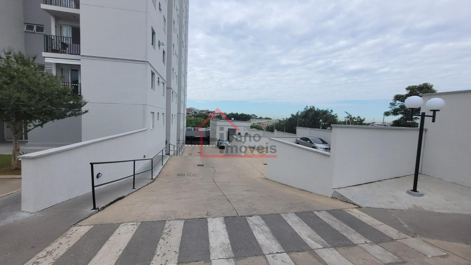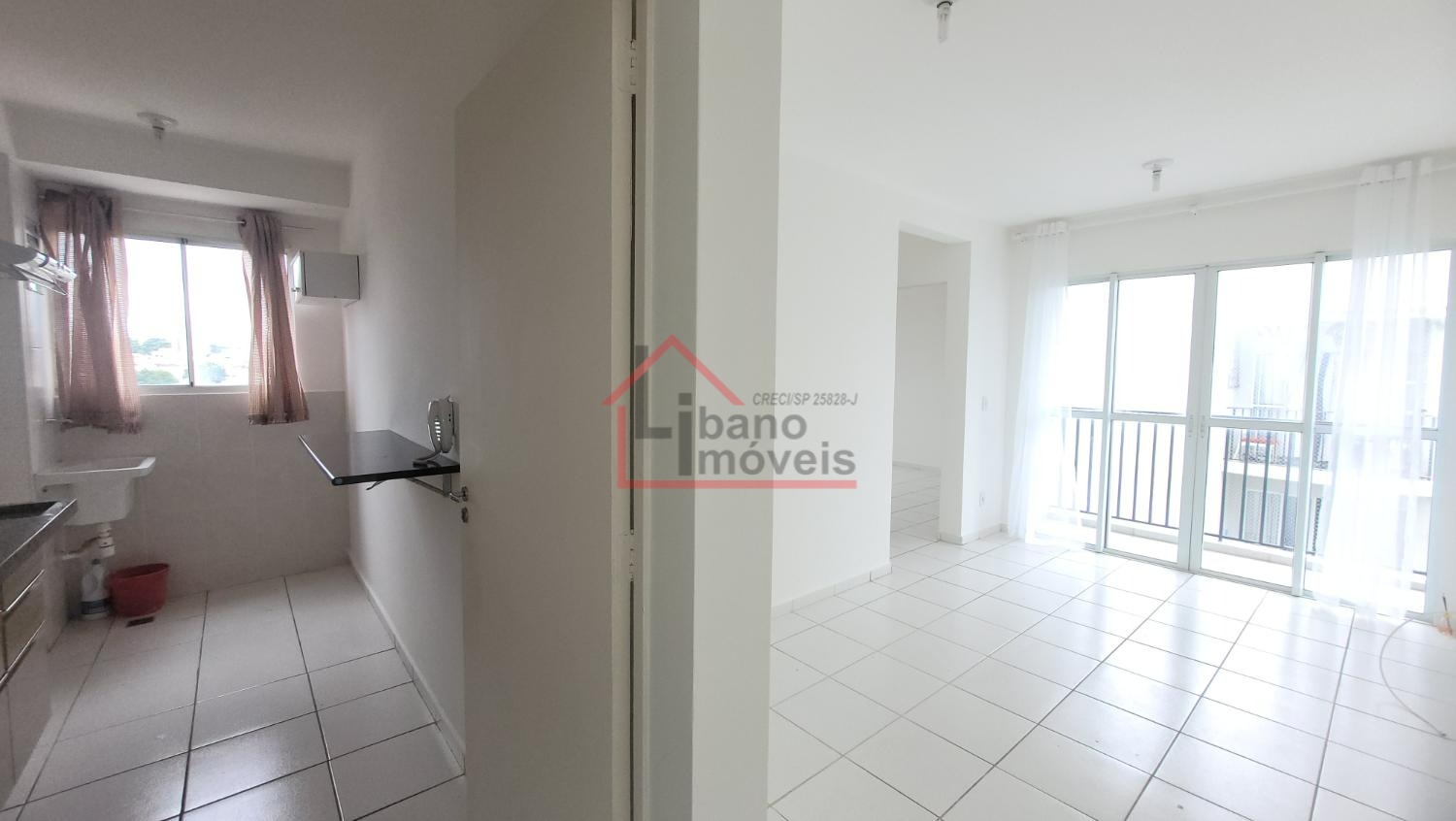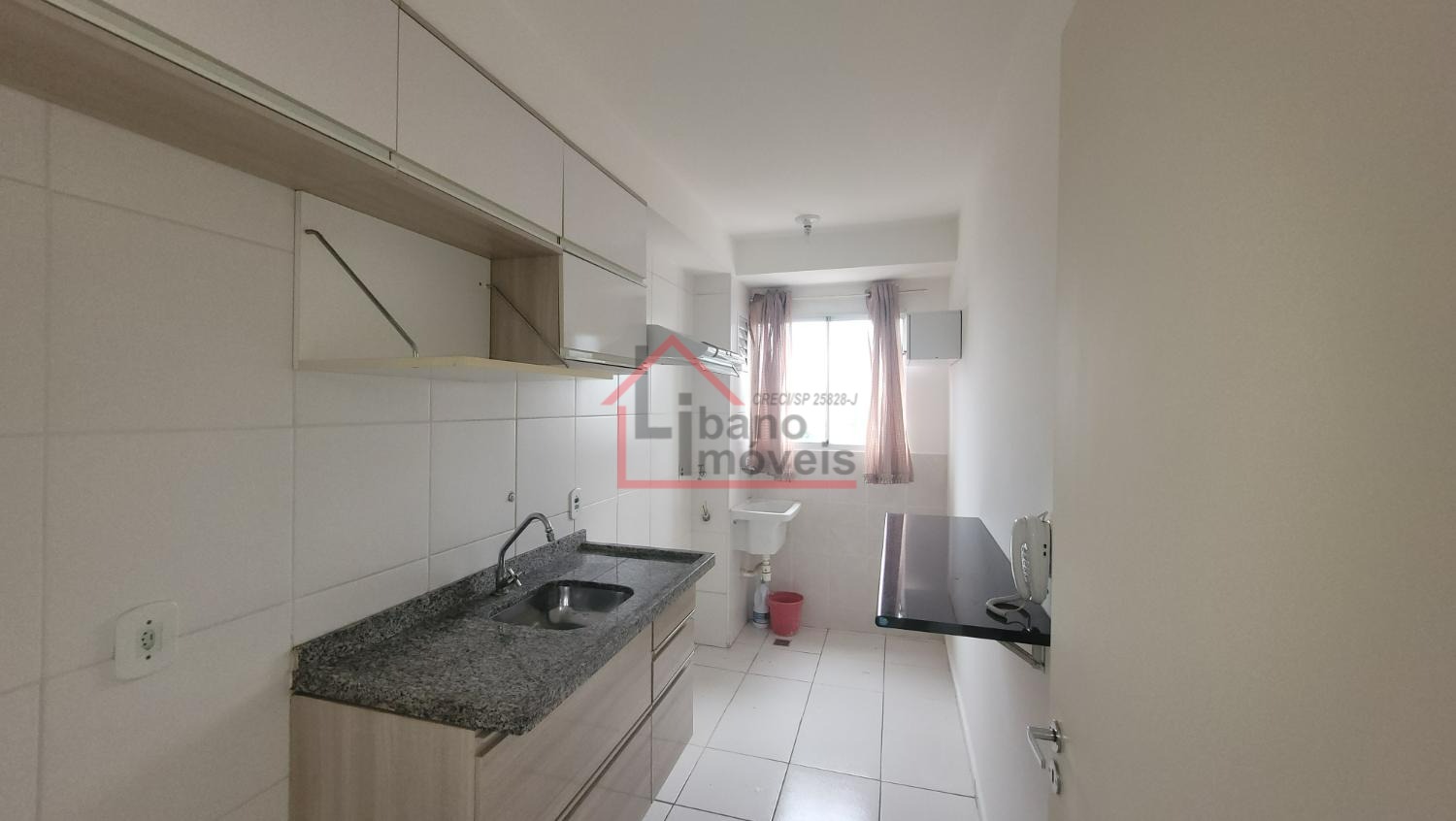 São 2 dormitórios (1 com armário), sala com pequena sacada, cozinha com gabinete embaixo da pia, banheiro social, área de serviço, garagem para 1 carro.