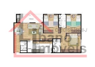 São 3 dormitórios com armários sendo 1 suíte, sala para 2 ambientes e com sacada, cozinha com armários planejados, banheiro social, área de serviço, 2 garagens cobertas e paralelas.
