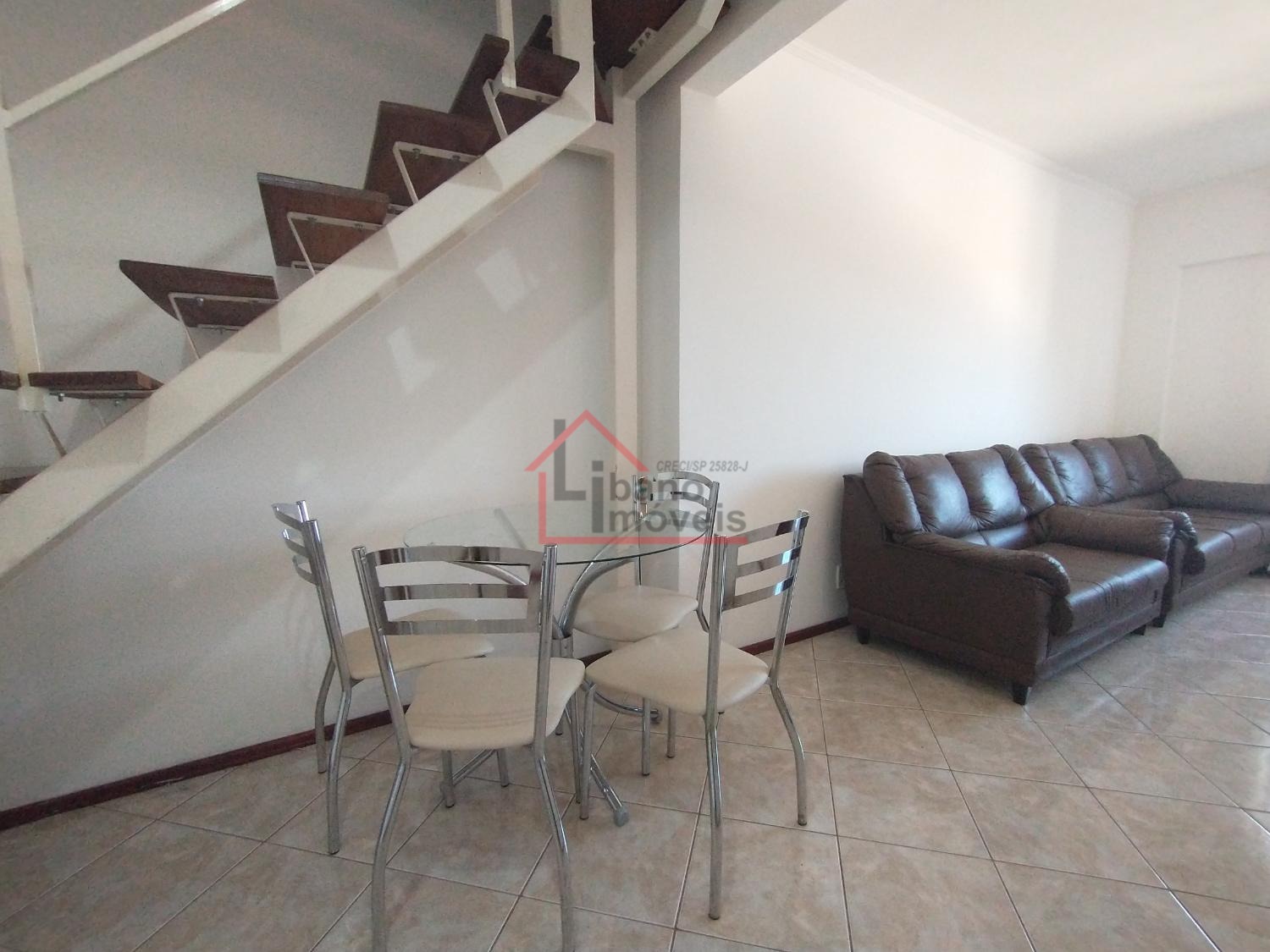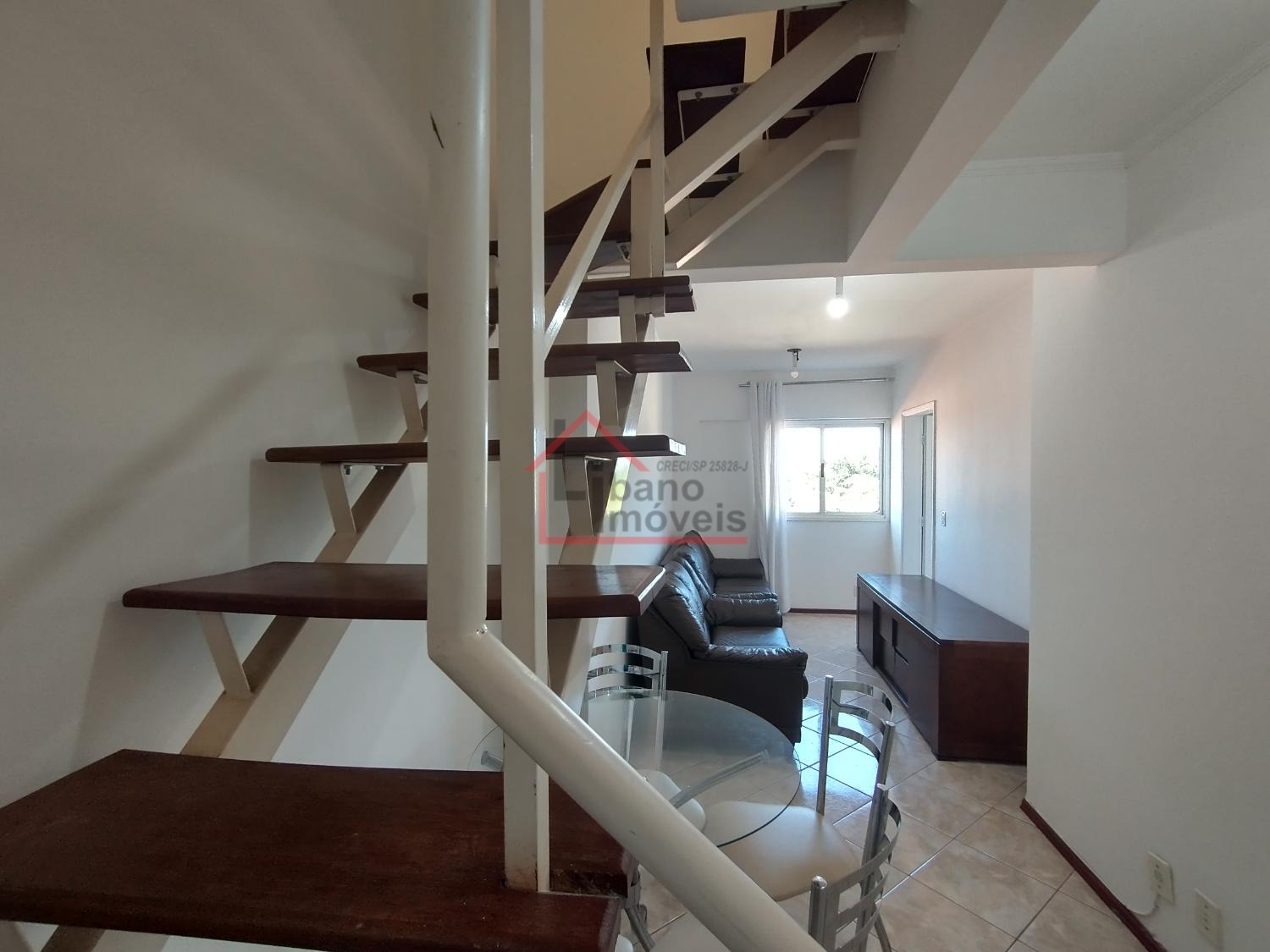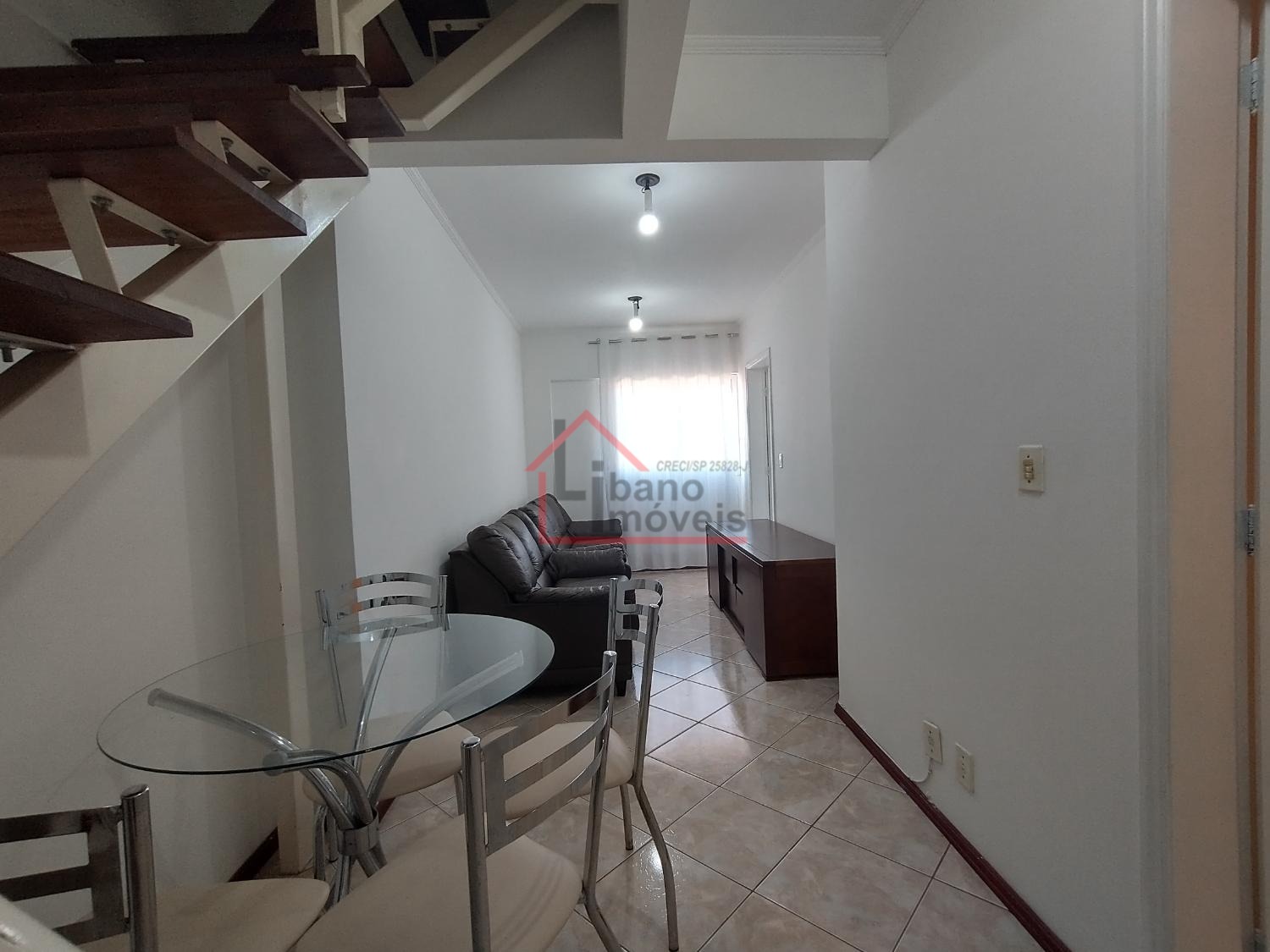 Possui 2 dormitórios com armários e banheiro (piso superior), sala, cozinha e lavabo (piso inferior), mobiliado, 1 vaga de garagem fixa coberta, 1 elevador e portaria física 24 horas. Piscina na cobertura do prédio.