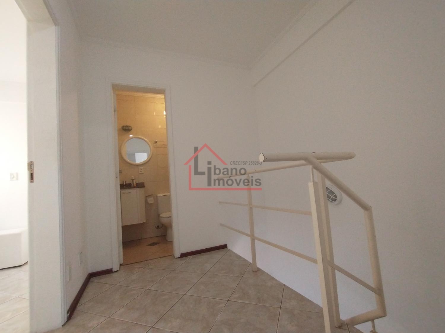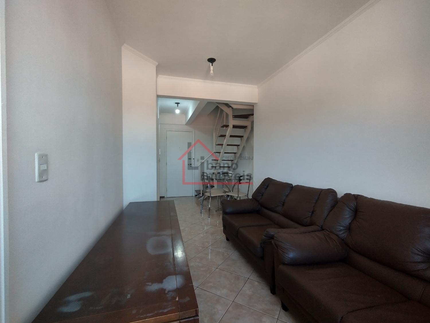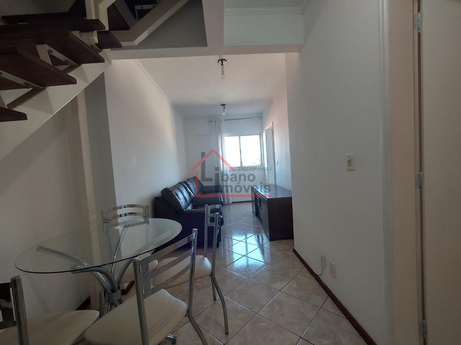 Possui 2 dormitórios com armários e banheiro (piso superior), sala, cozinha e lavabo (piso inferior), mobiliado, 1 vaga de garagem fixa coberta, 1 elevador e portaria física 24 horas. Piscina na cobertura do prédio.