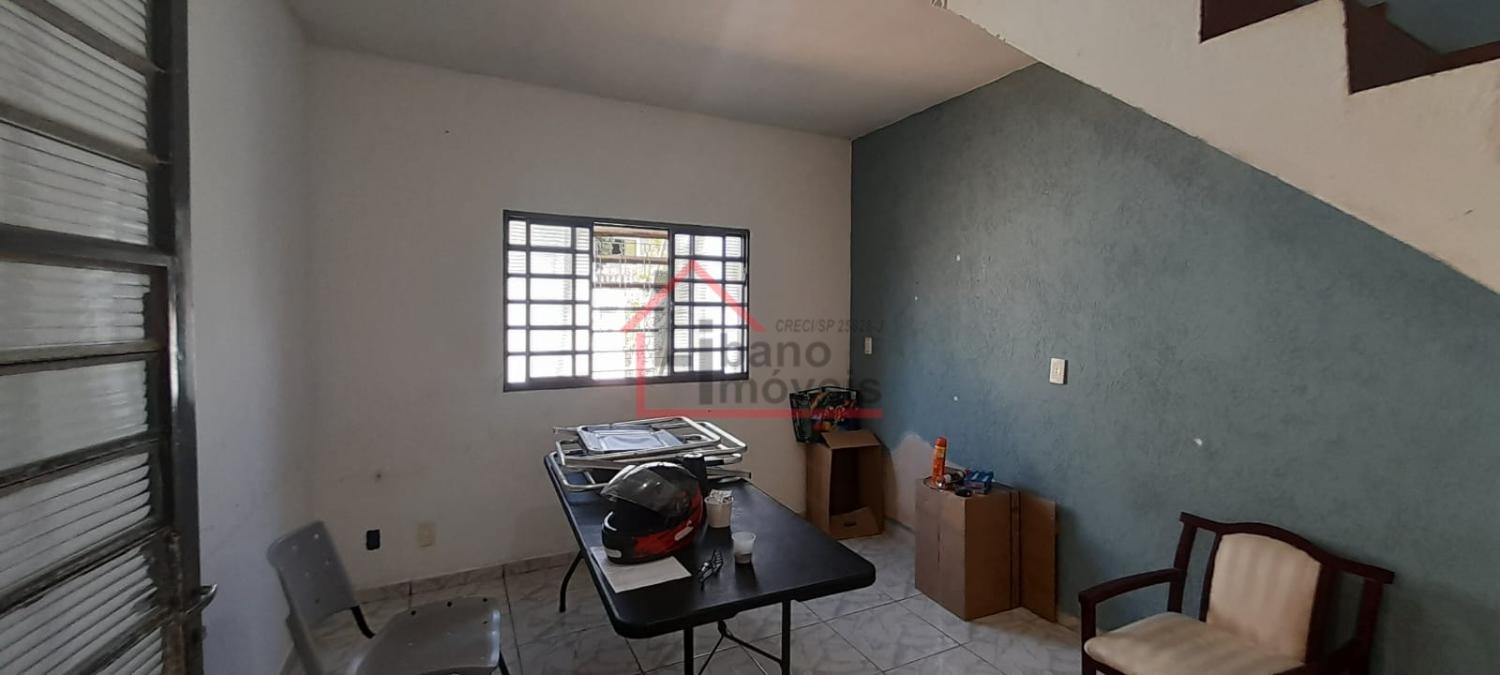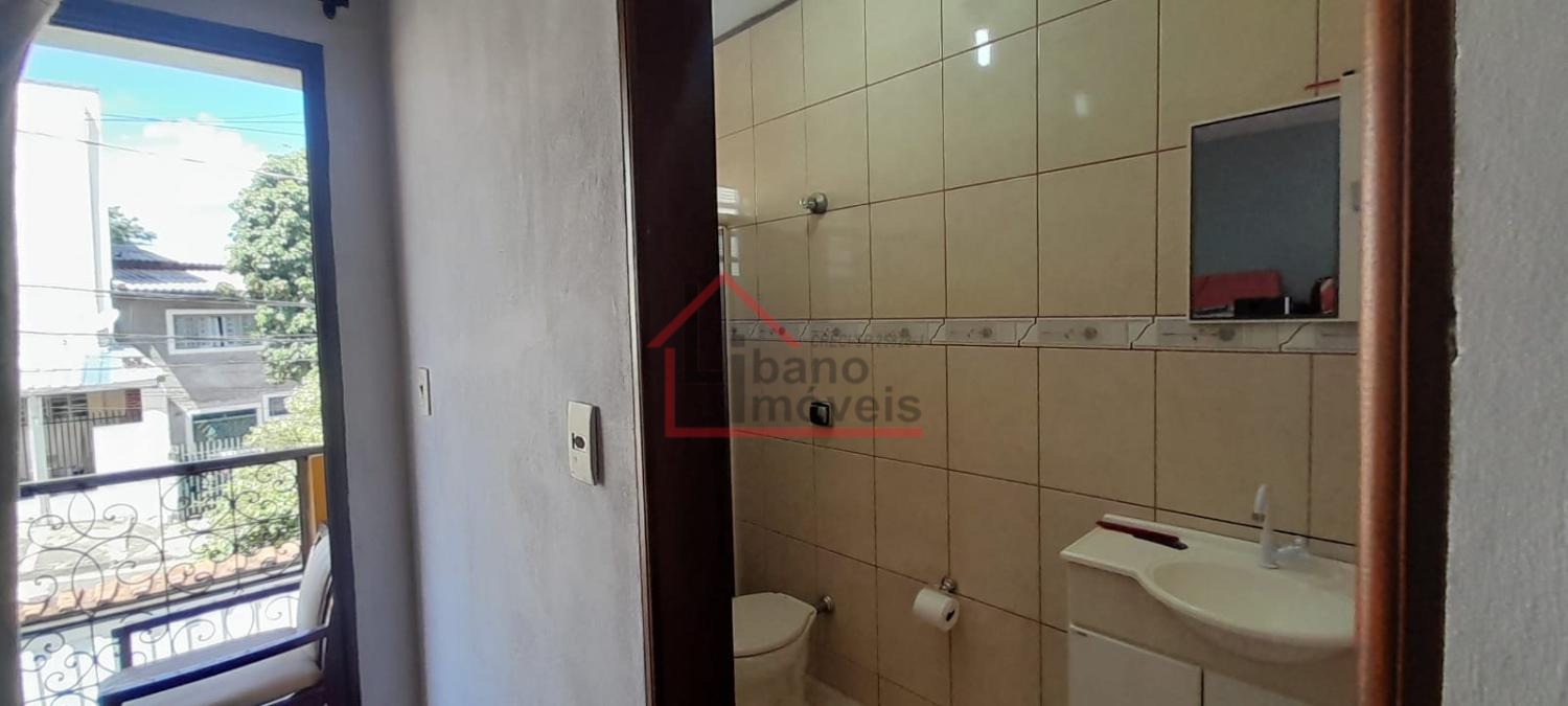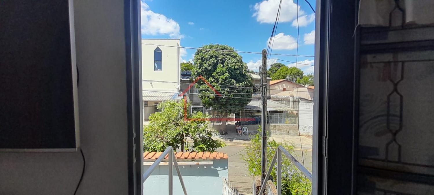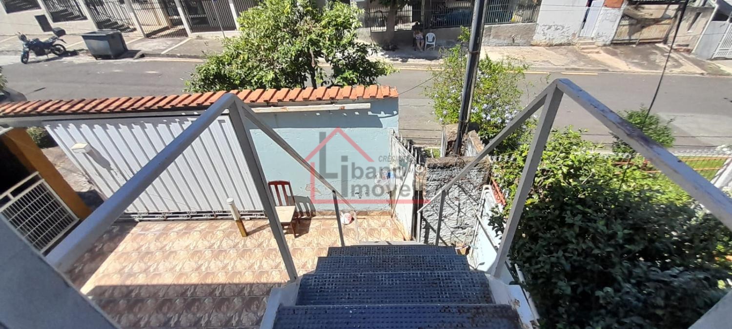 Sobrado no bairro Jardim Alto da Cidade Universitária em Campinas/SP. São 3 dormitóiros sendo um suíte, sala de estar e de jantar, cozinha, área de serviço, banheiro social e 2 vagas de garagem. Há uma escada externa para acesso a sala de cima.