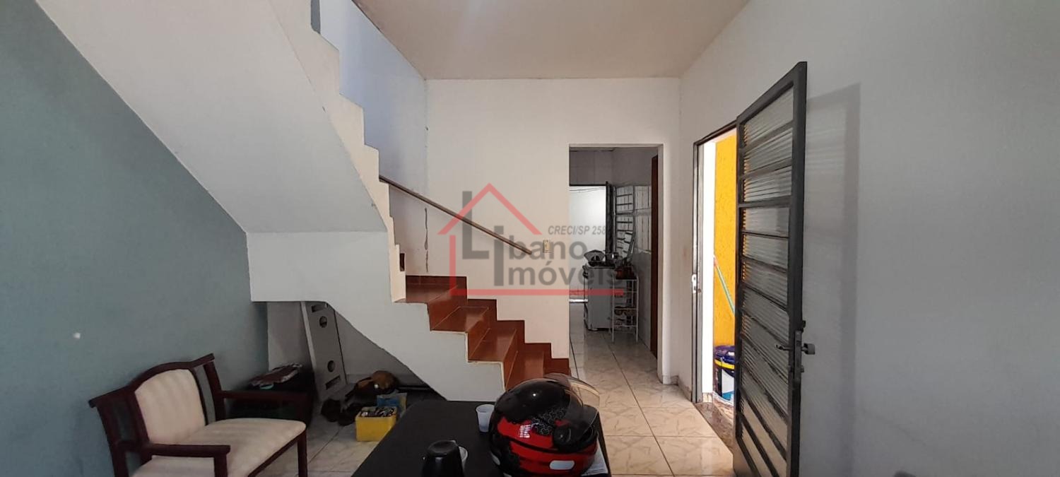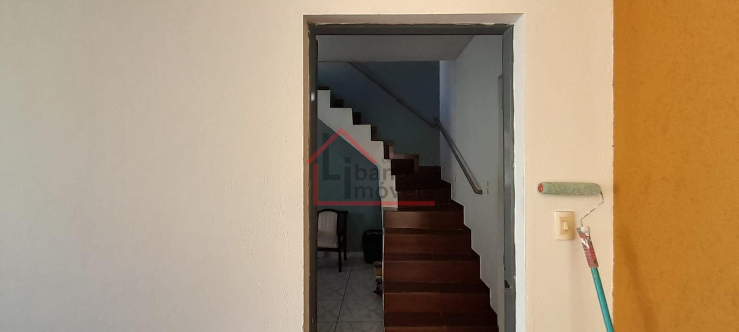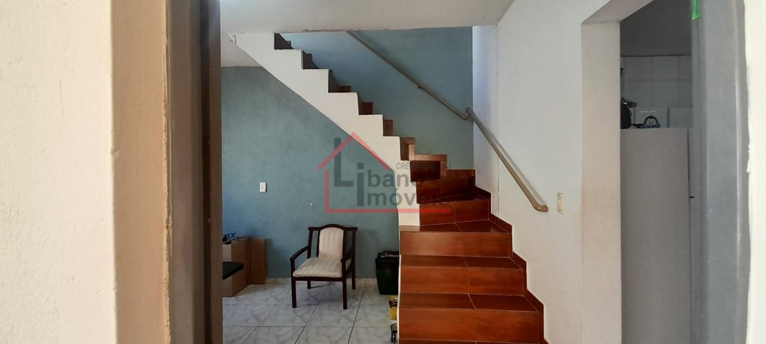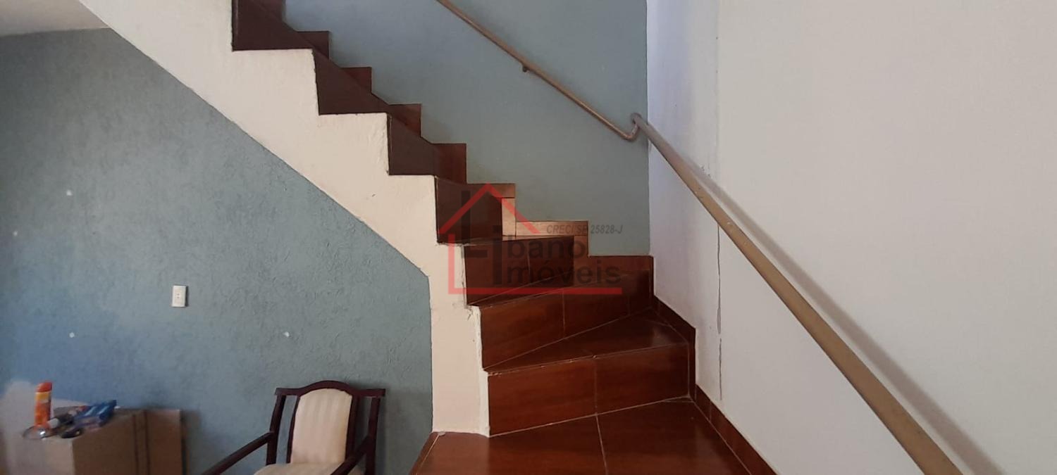 Sobrado no bairro Jardim Alto da Cidade Universitária em Campinas/SP. São 3 dormitóiros sendo um suíte, sala de estar e de jantar, cozinha, área de serviço, banheiro social e 2 vagas de garagem. Há uma escada externa para acesso a sala de cima.