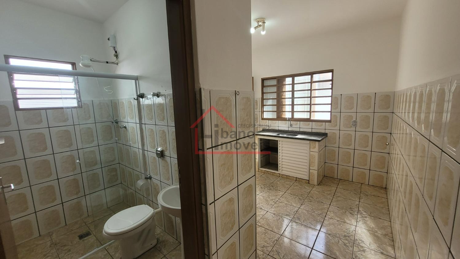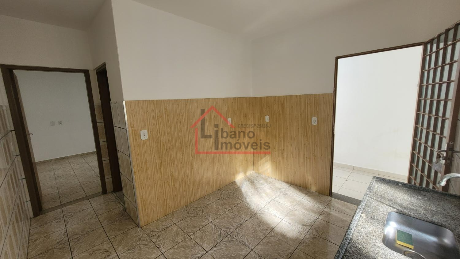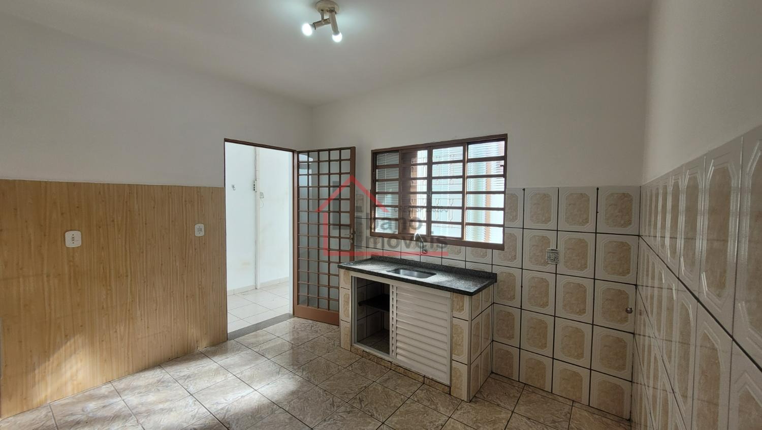 Tem dormitório tamanho médio para grande, piso cerâmico, com grades nas janelas, cozinha com banheiro.