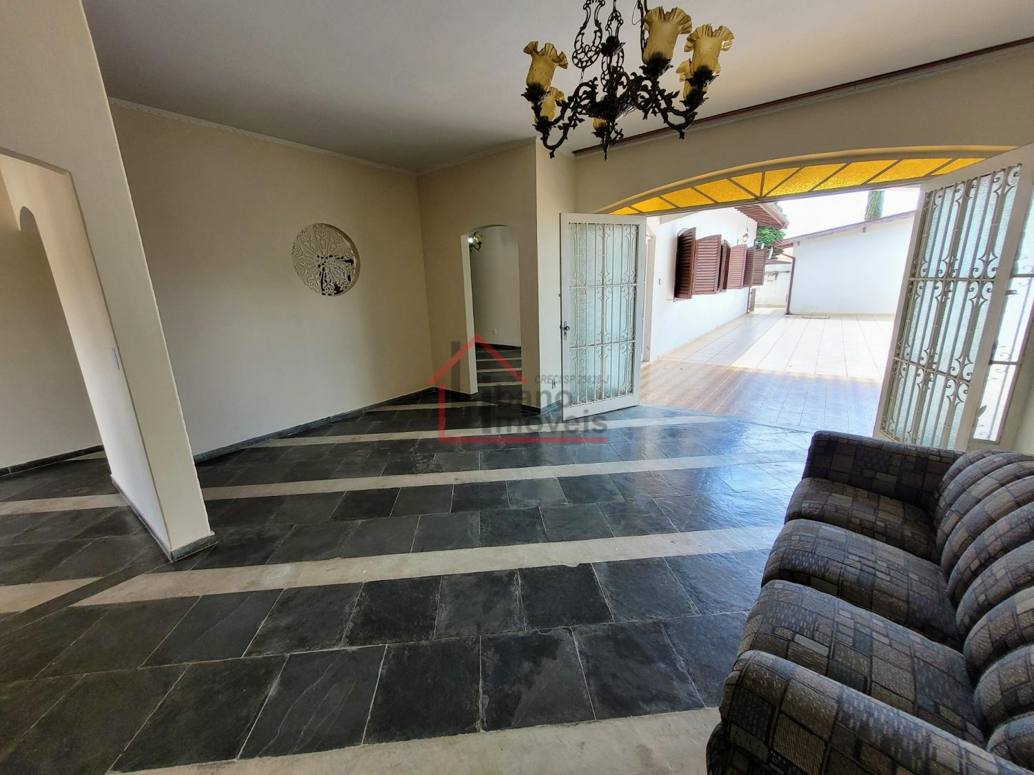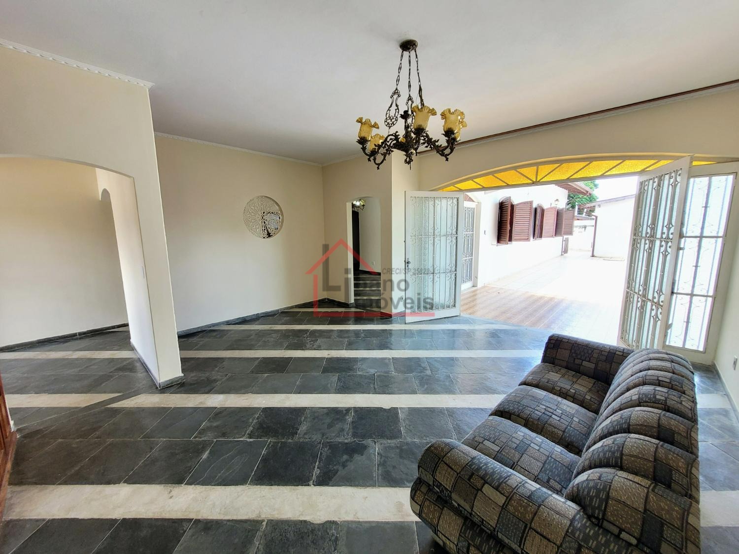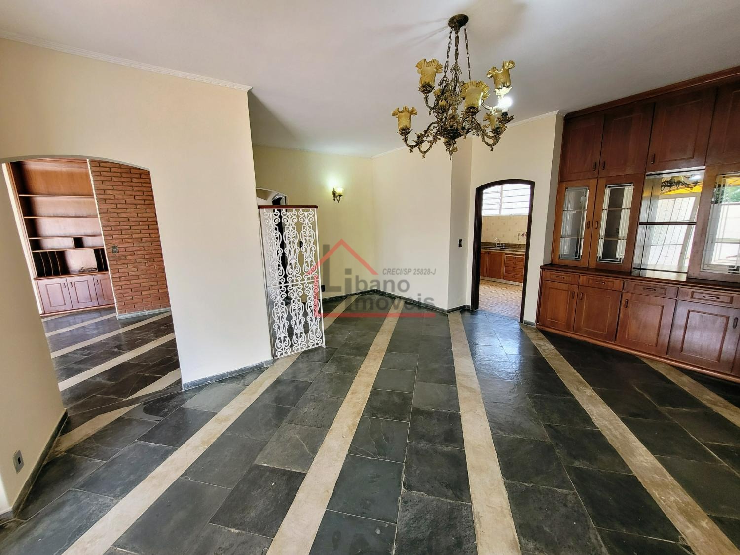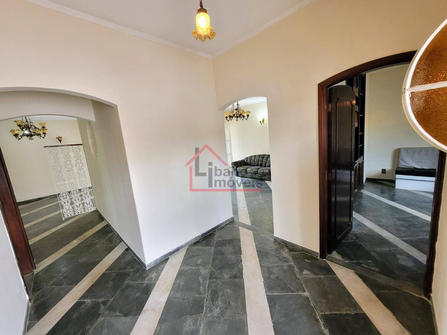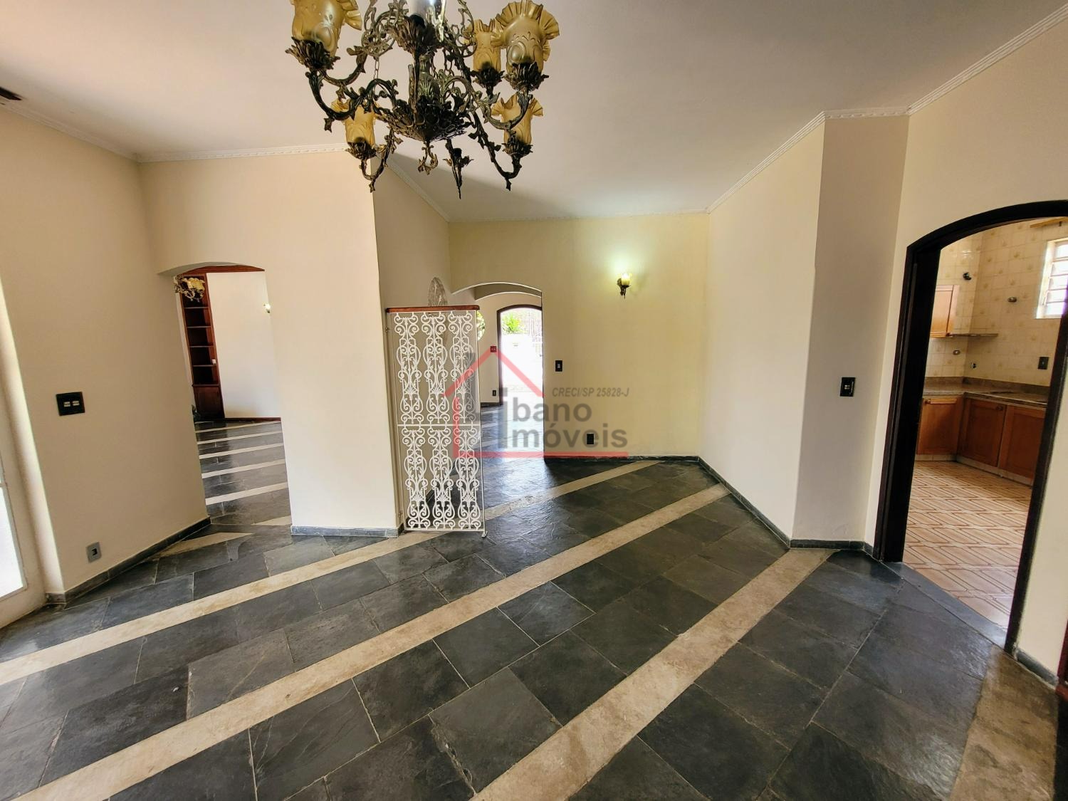 Sala de TV, sala de estar, sala de jantar, cozinha planejada com armários e despensa, lavabo, área de serviço coberta e vagas para até 5 autos no total.
