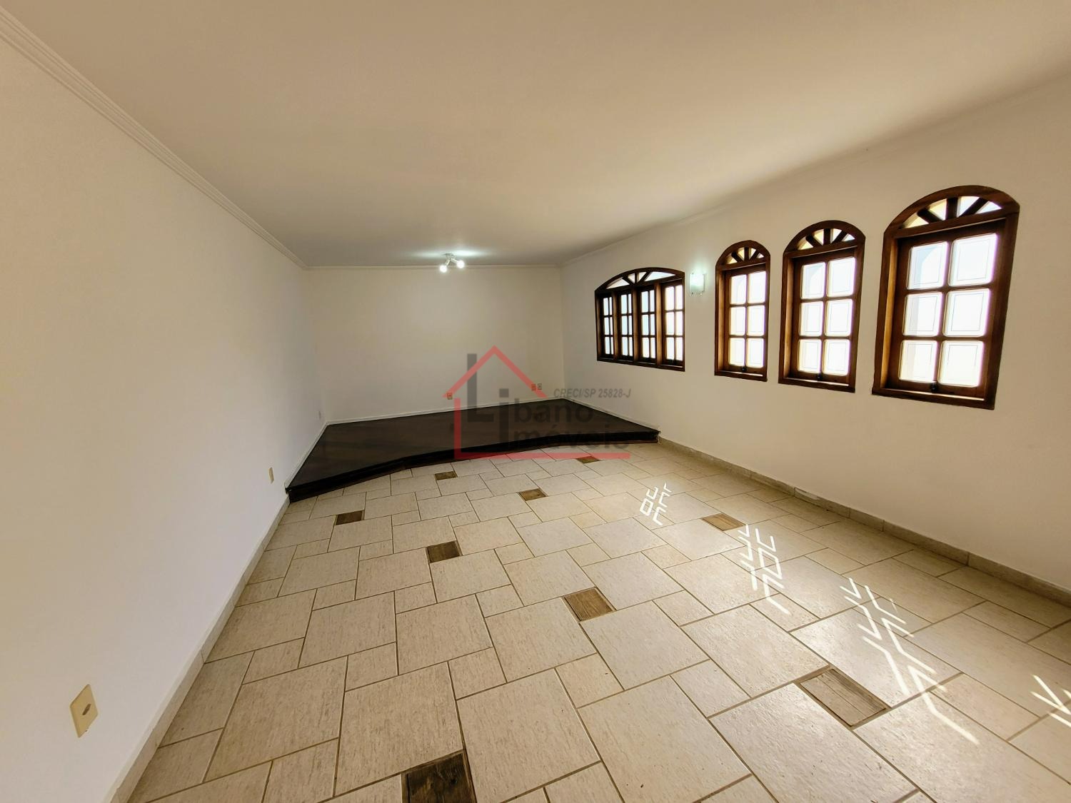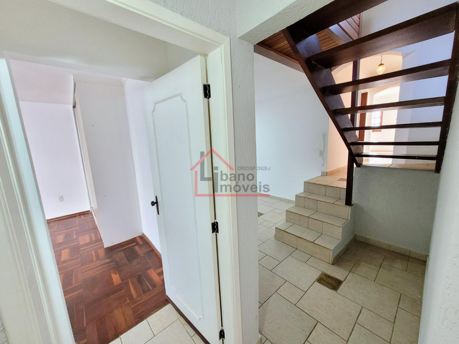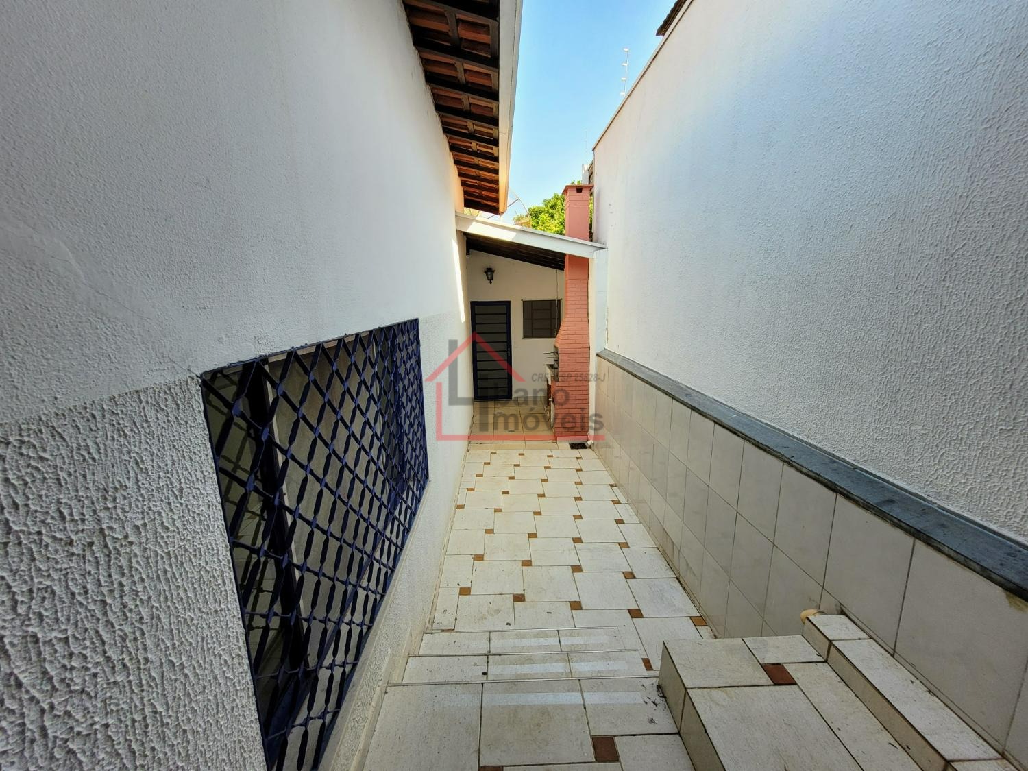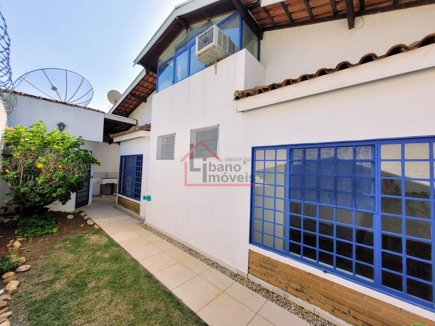 Casa assobrada, com sala de estar, sala de jantar, cozinha com armários, varanda com churrasqueira.
