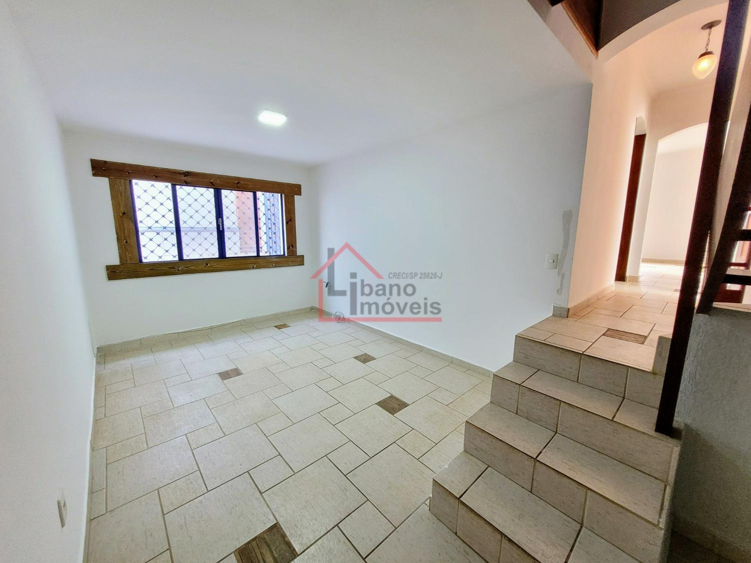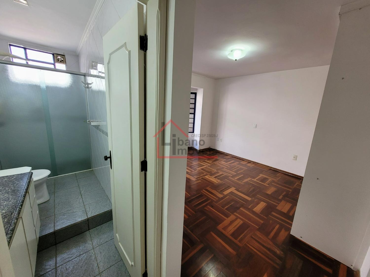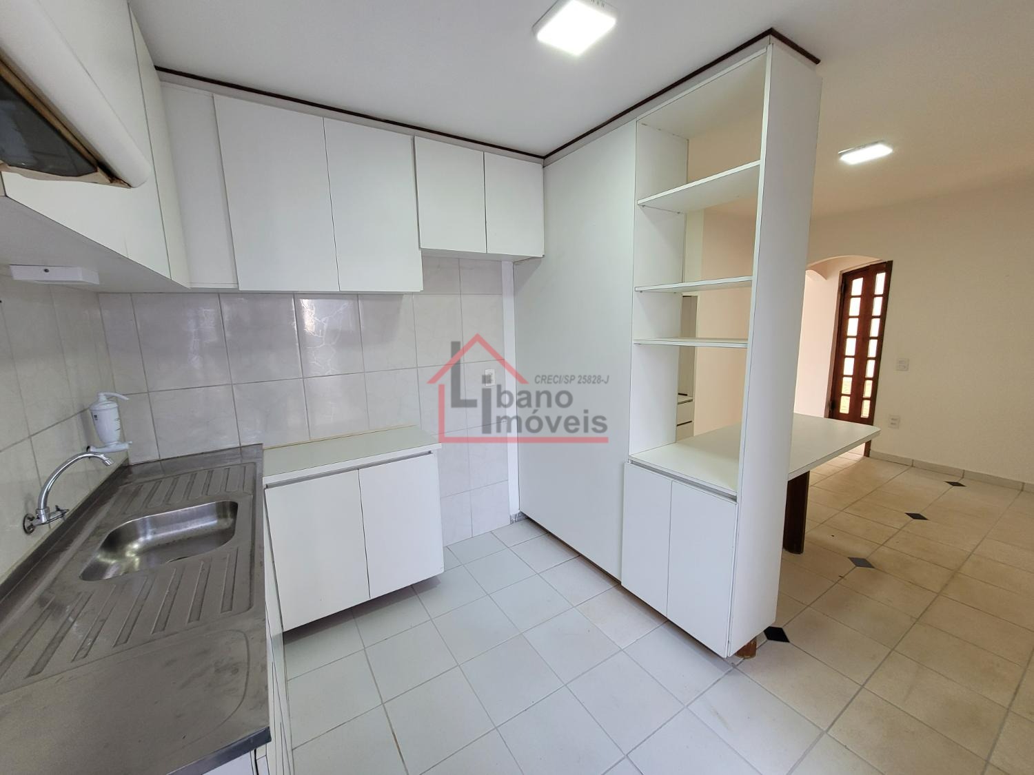 Casa assobrada, com sala de estar, sala de jantar, cozinha com armários, varanda com churrasqueira.