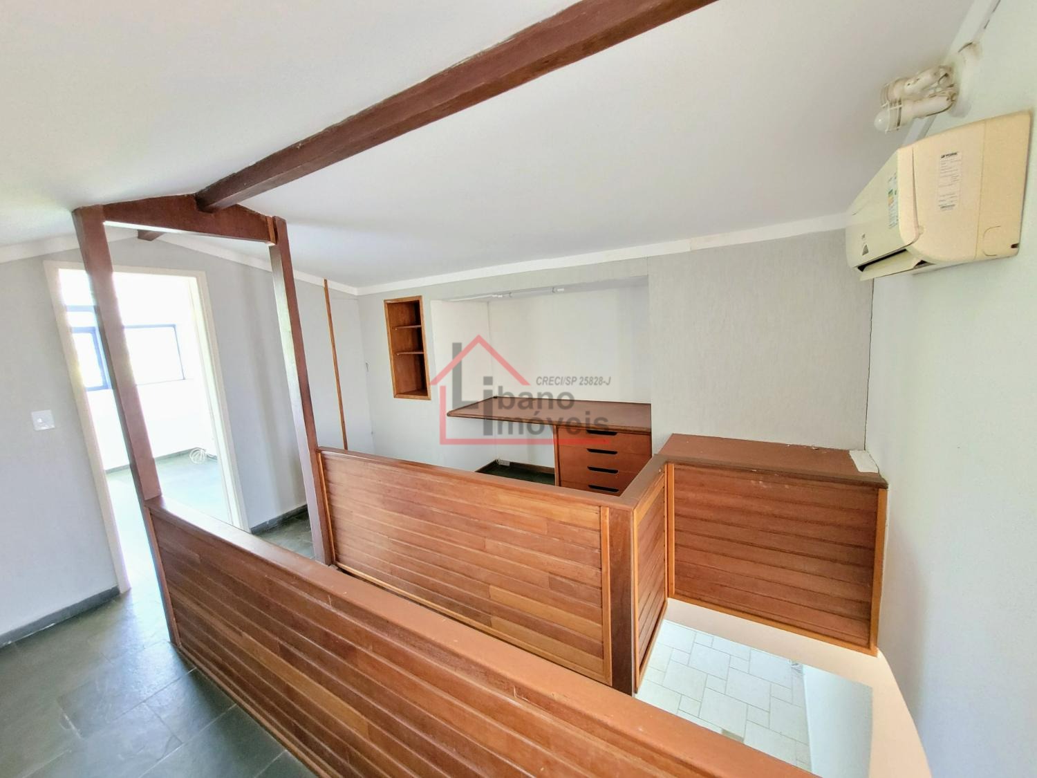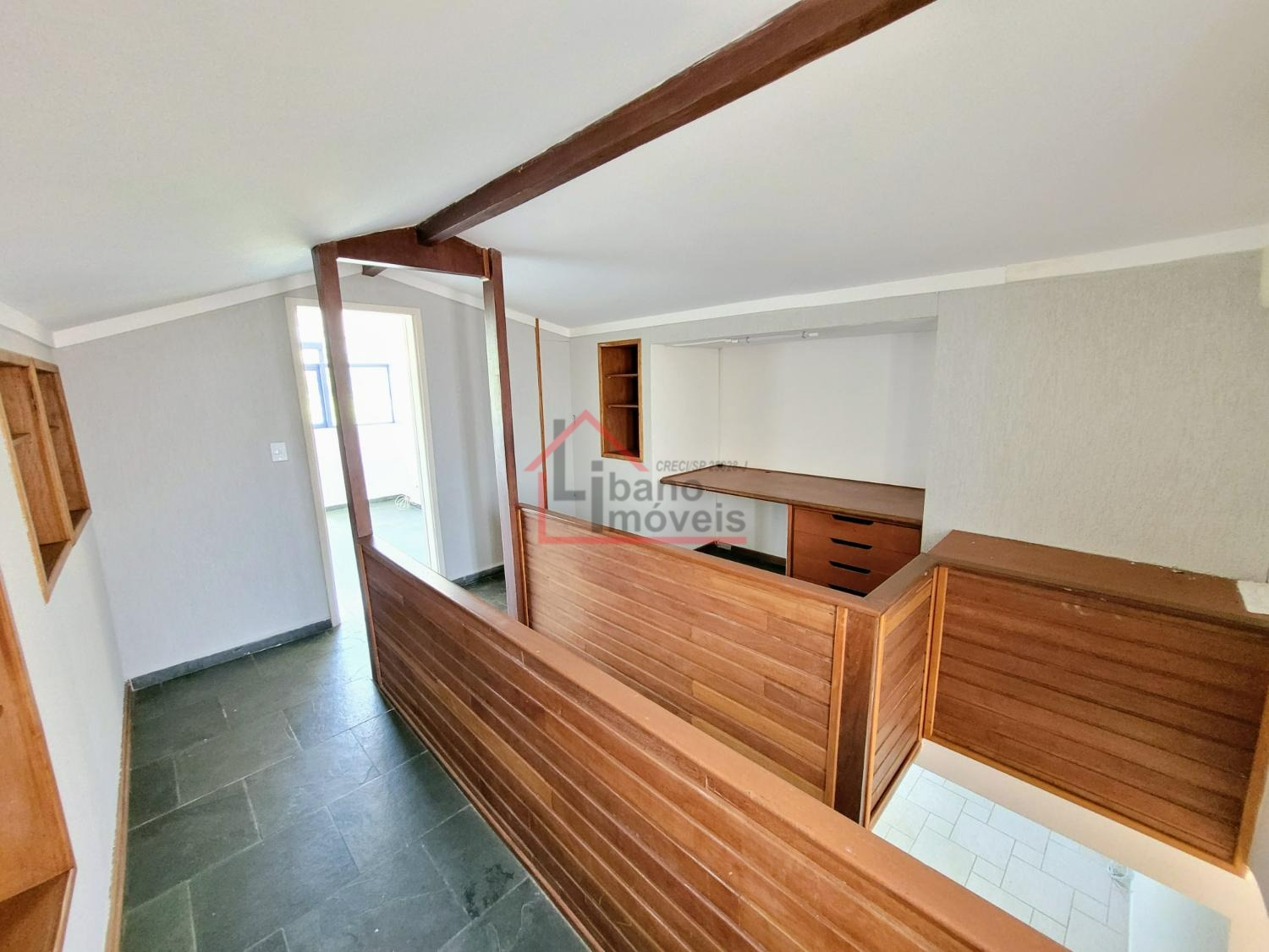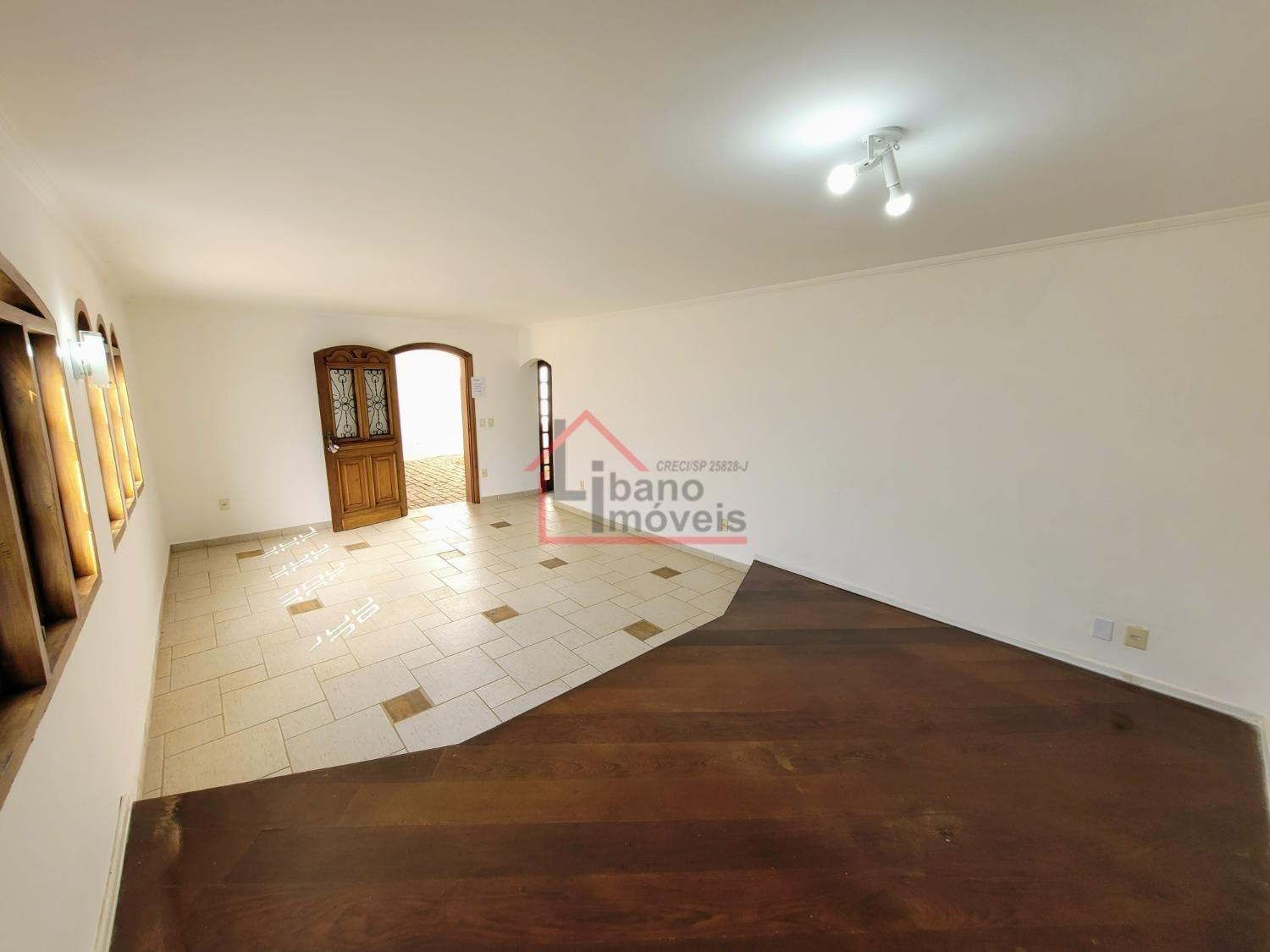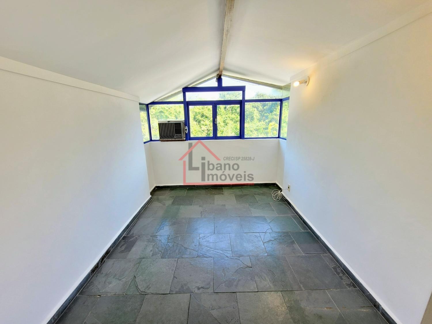 Casa assobrada, com sala de estar, sala de jantar, cozinha com armários, varanda com churrasqueira.