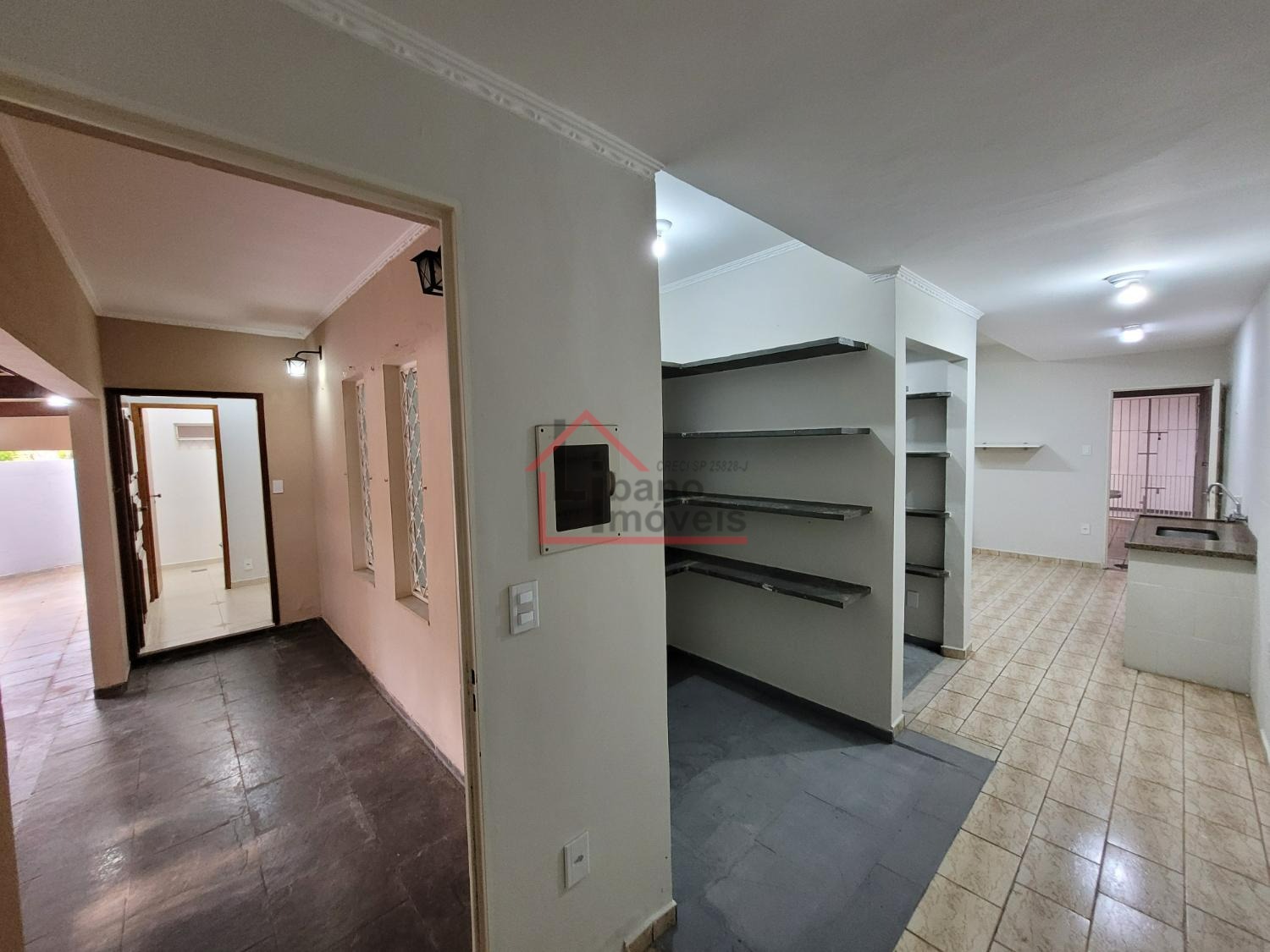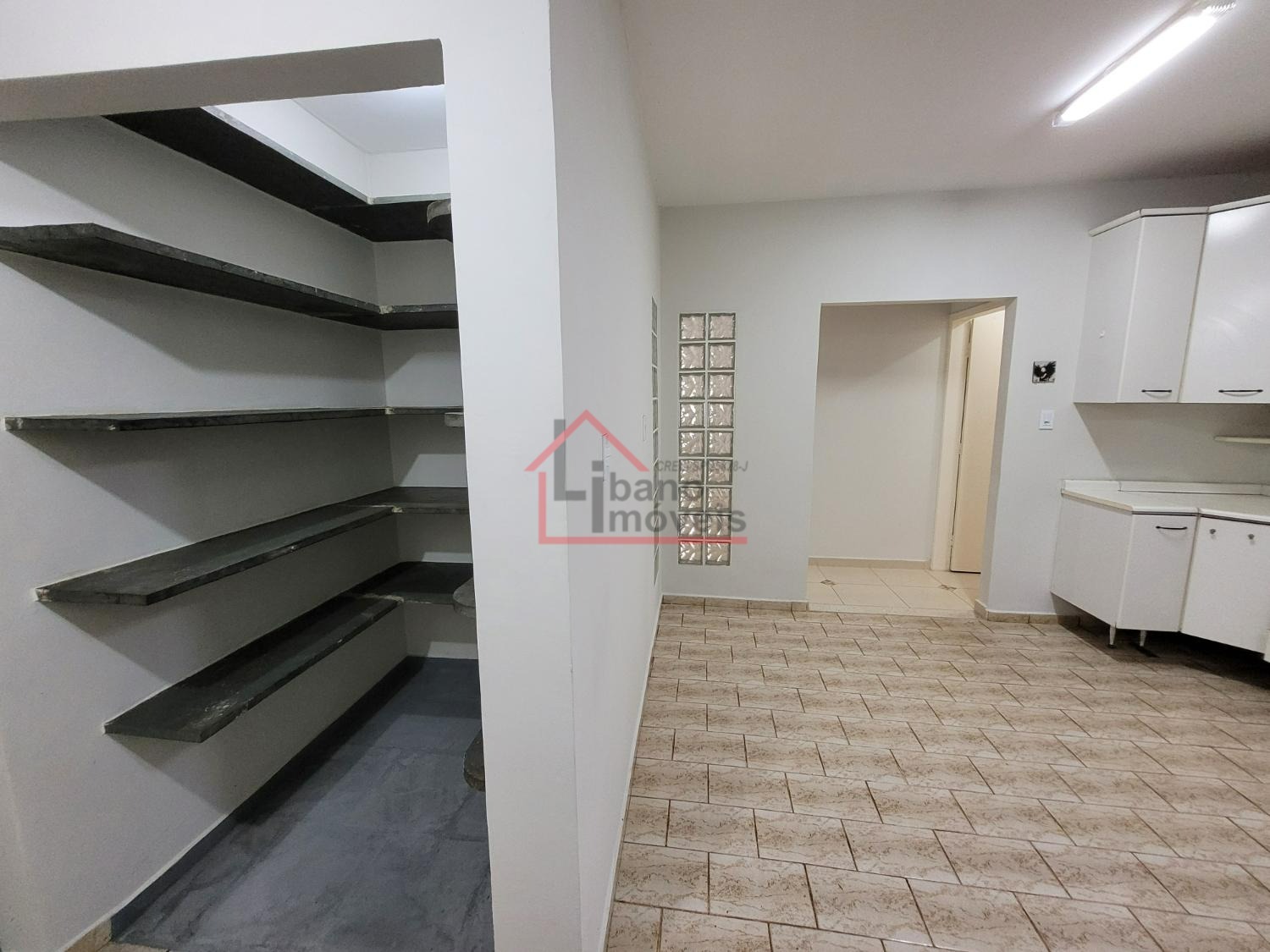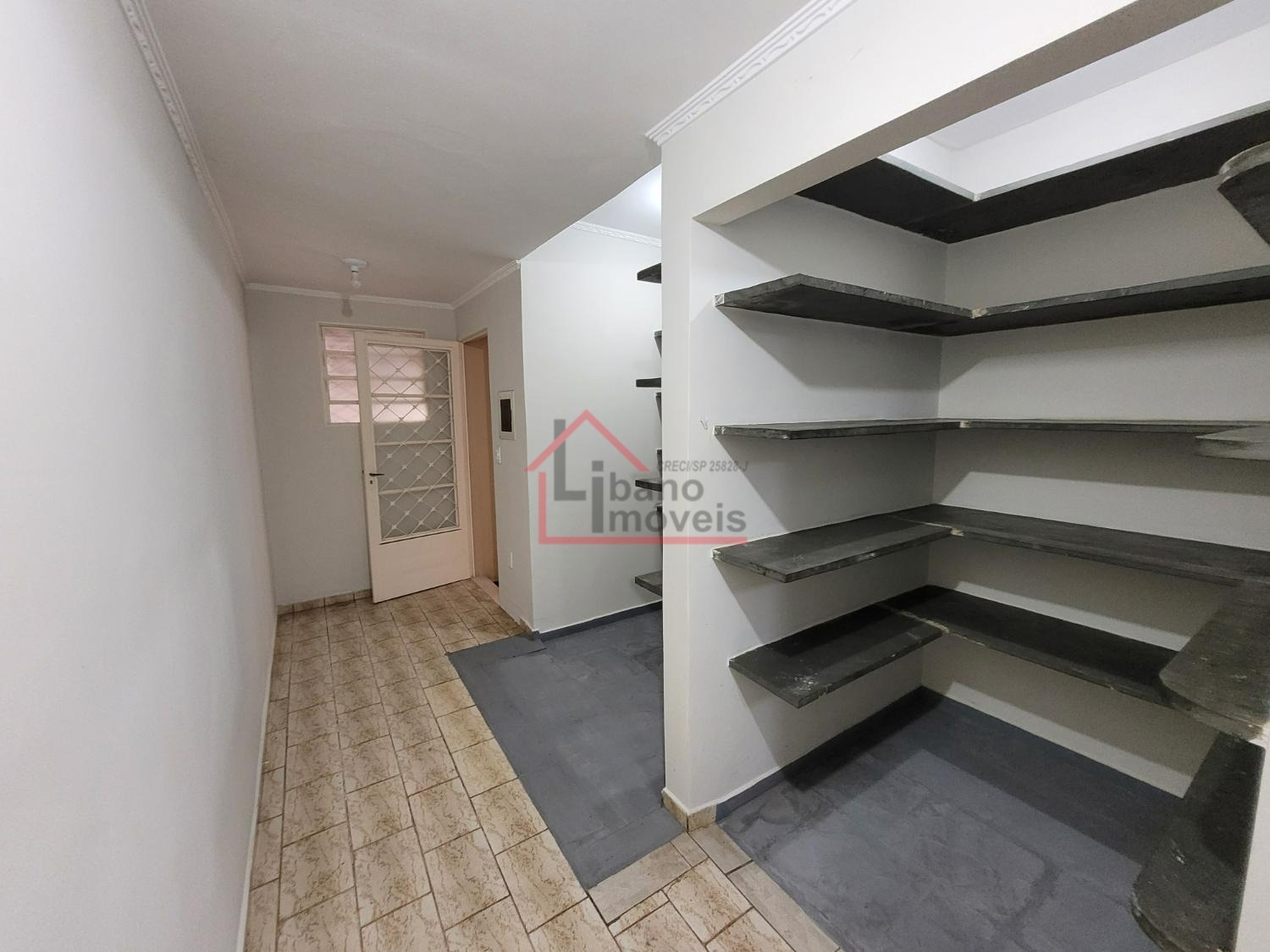Imóvel com prateleiras e nichos externos para organização.