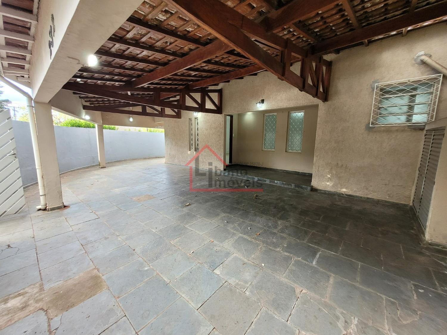 Ampla varanda frontal com possibilidade para estacionar 4 autos (cobertas).