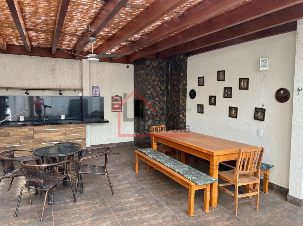 São 3 dormitórios, sendo 1 suíte, sala de estar, sala de jantar, hall amplo na parte de cima, banheiro social, escritório, cozinha e lavanderia. Quintal no fundo com piscina, churrasqueira e banheiro.