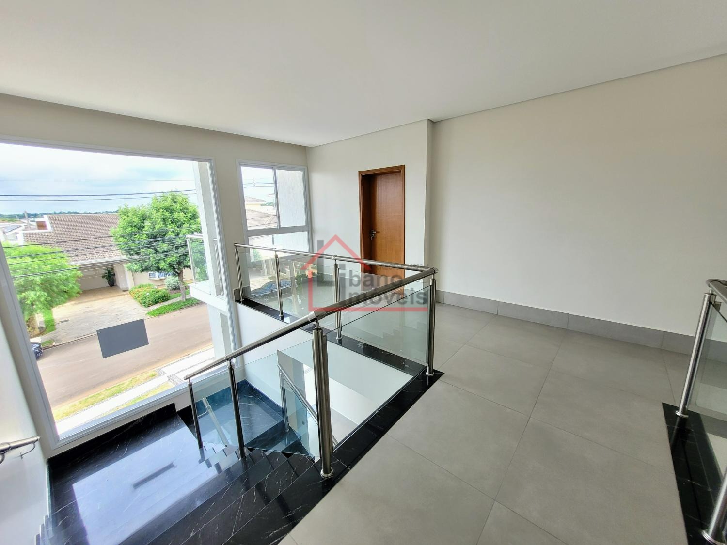 Pavimento superior: são 3 dormitórios (sendo 3 suítes - todas preparadas para ar condicionado, todas com armários embutidos, janelas de alumínio com persianas retráteis)