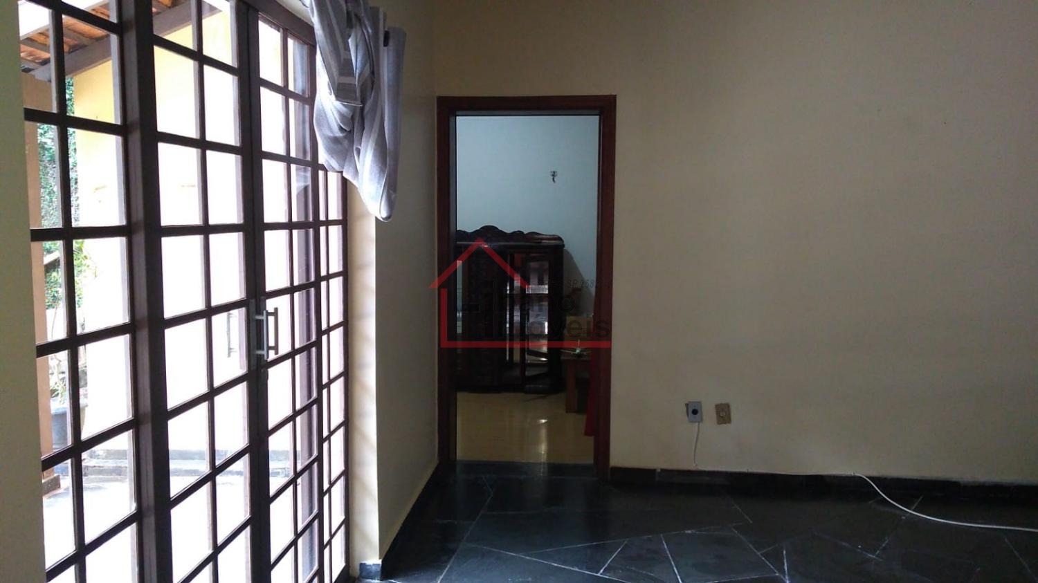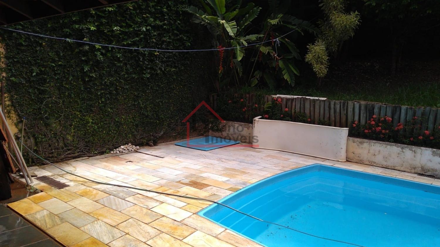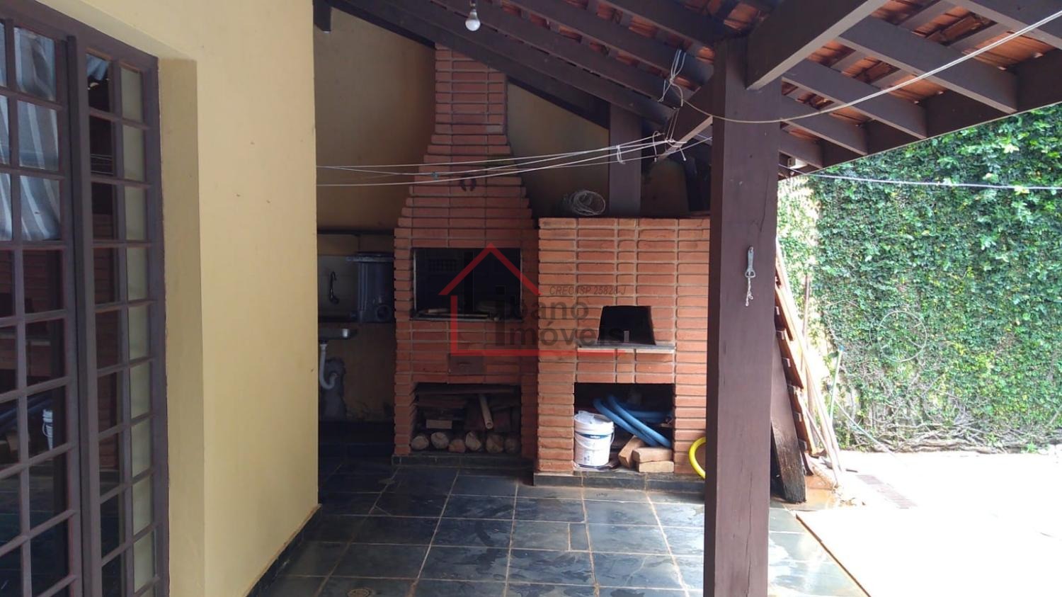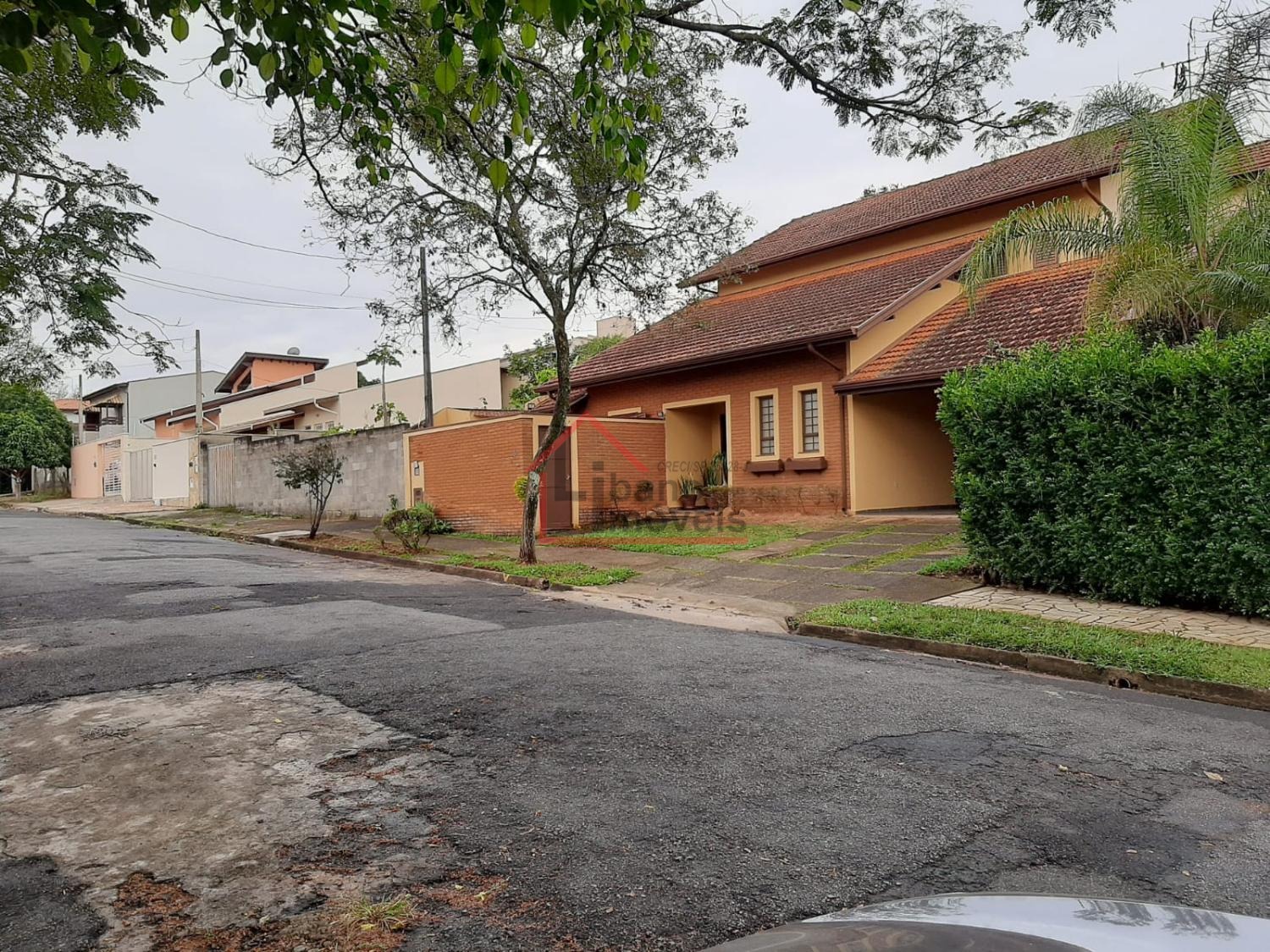 Piso inferior: 3 salas, sendo uma com lareira, escada em madeira Ipê, escritório, lavabo, cozinha com piso de granito, despensa, quarto de empregada, banheiro de empregada, área de serviço e local para varal, depósito, piscina, churrasqueira, forno a lenha, pomar, varandas, garagem para 3 carros e guarda motos