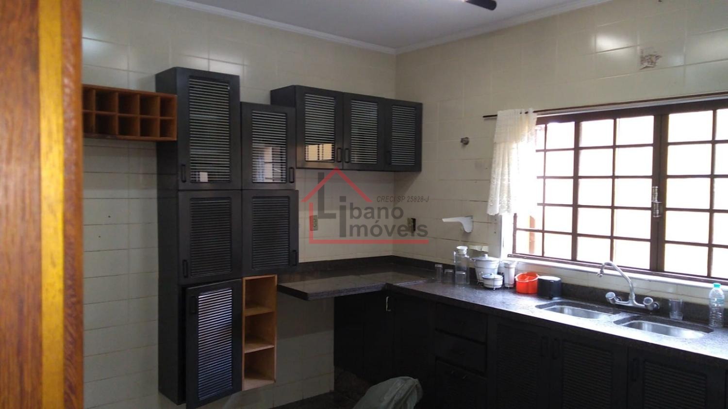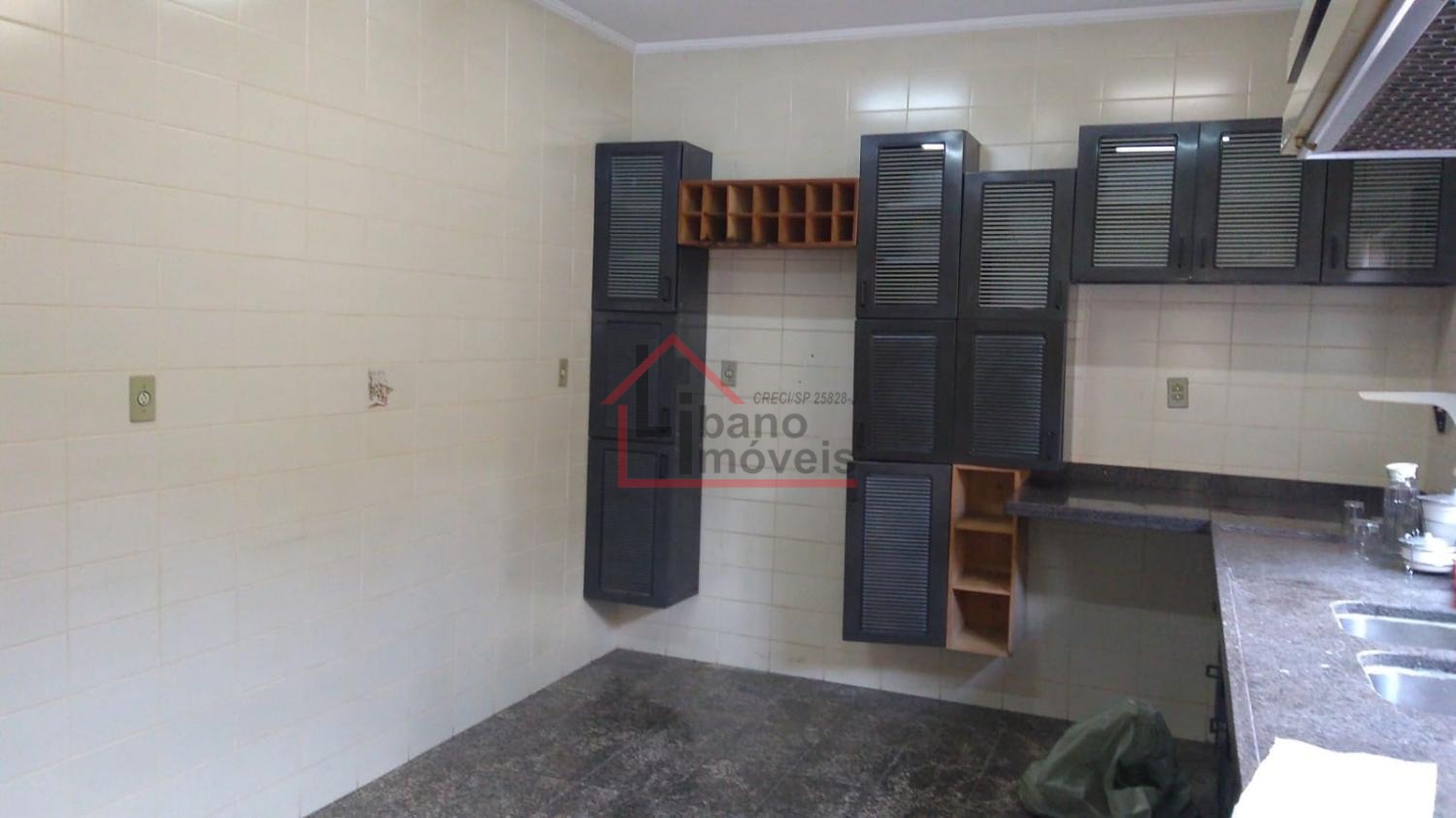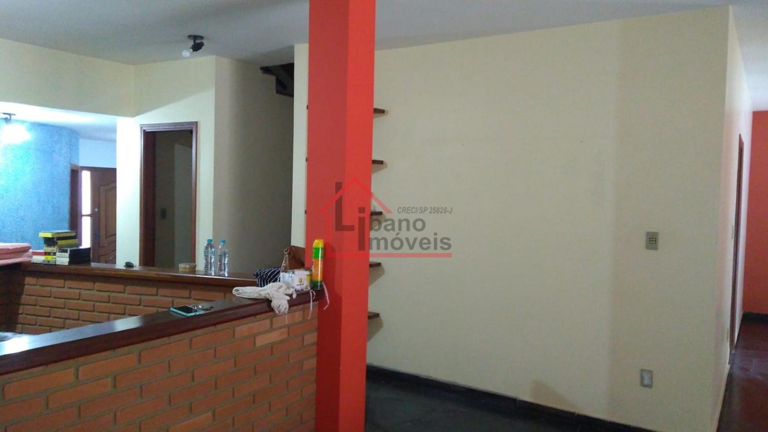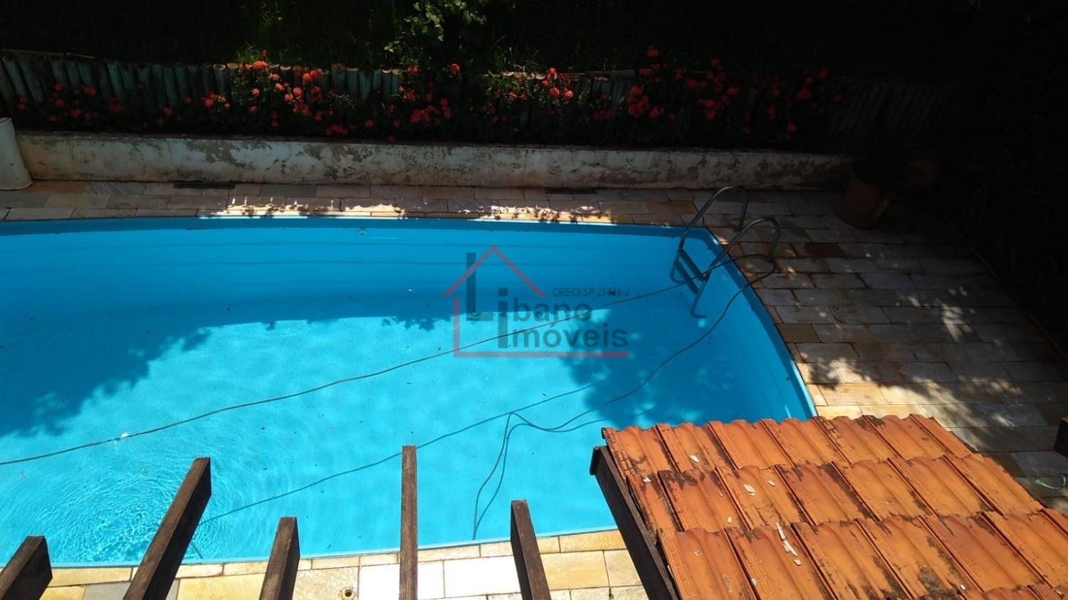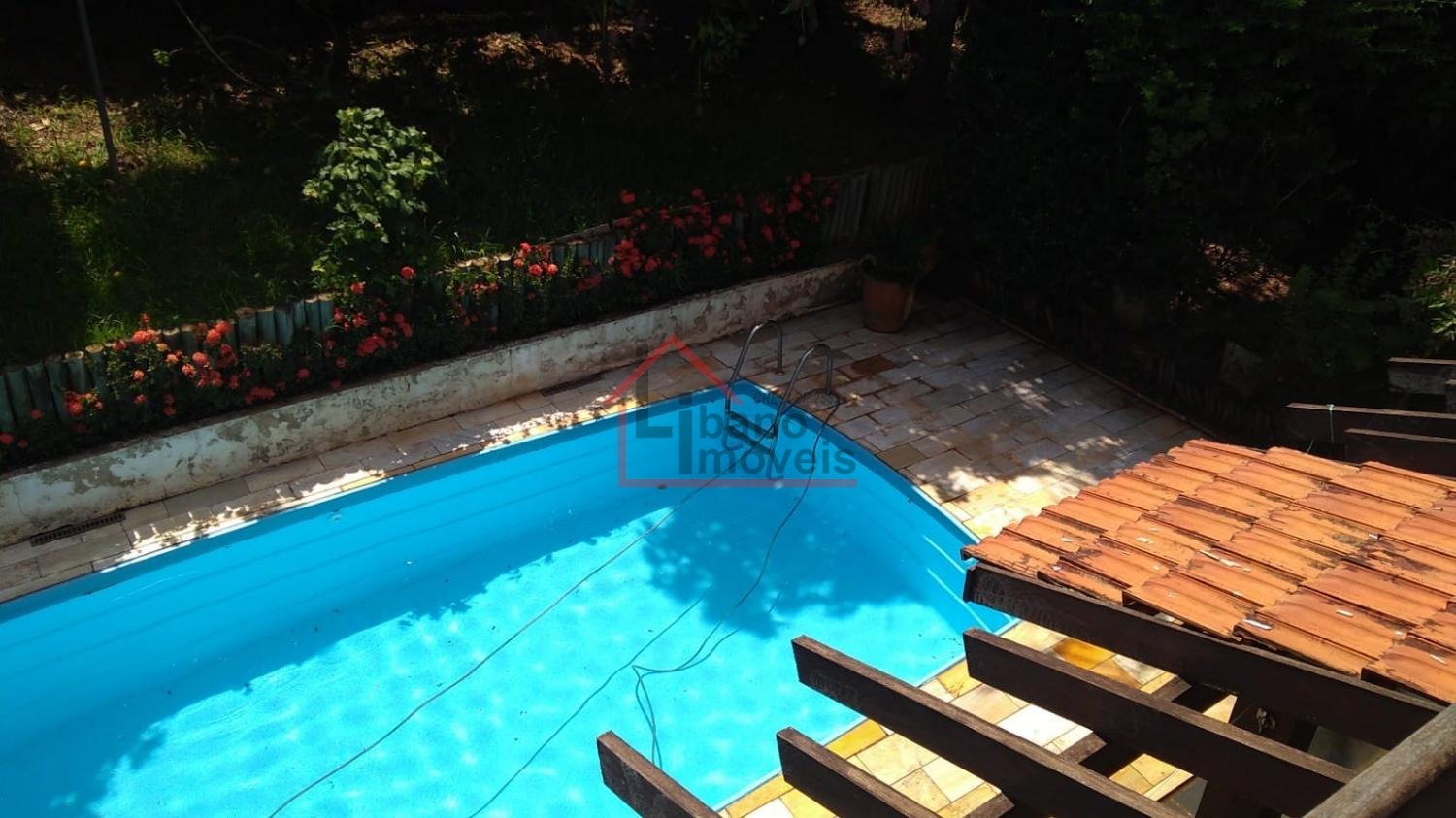 Piso inferior: 3 salas, sendo uma com lareira, escada em madeira Ipê, escritório, lavabo, cozinha com piso de granito, despensa, quarto de empregada, banheiro de empregada, área de serviço e local para varal, depósito, piscina, churrasqueira, forno a lenha, pomar, varandas, garagem para 3 carros e guarda motos