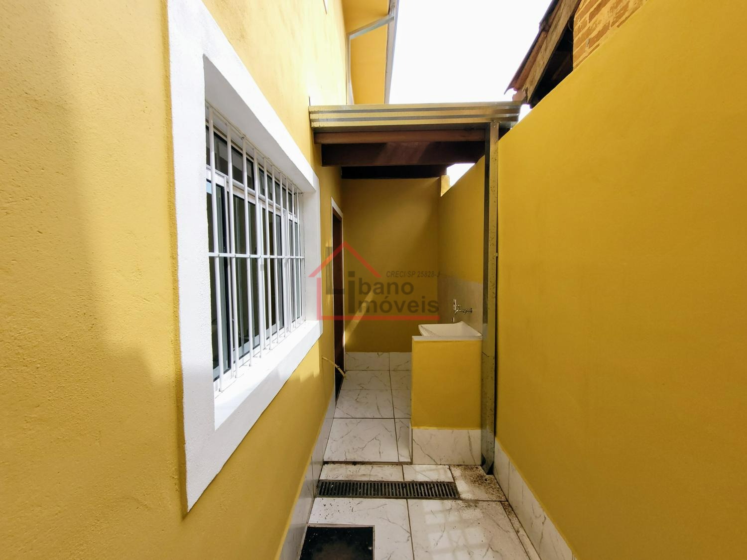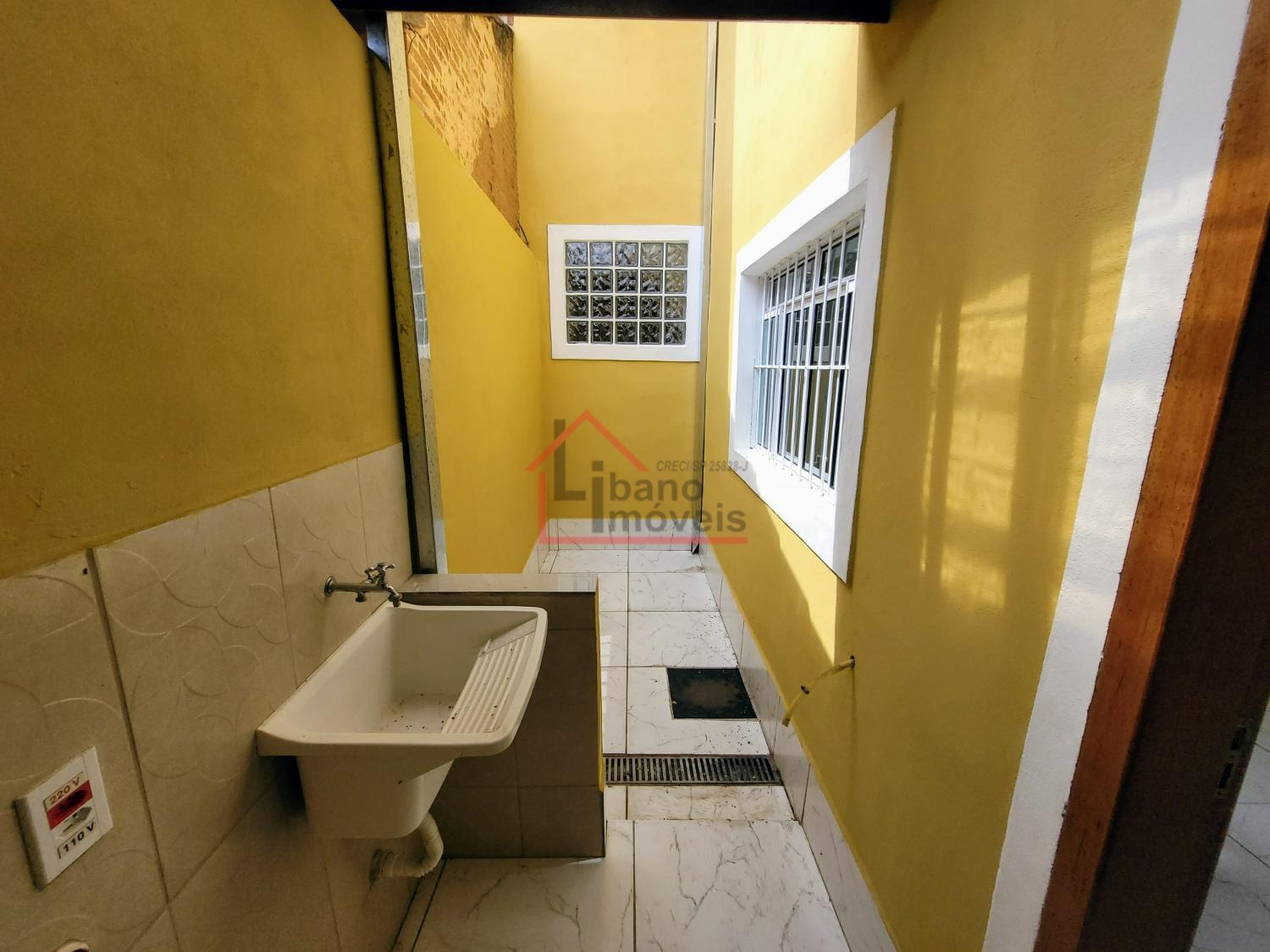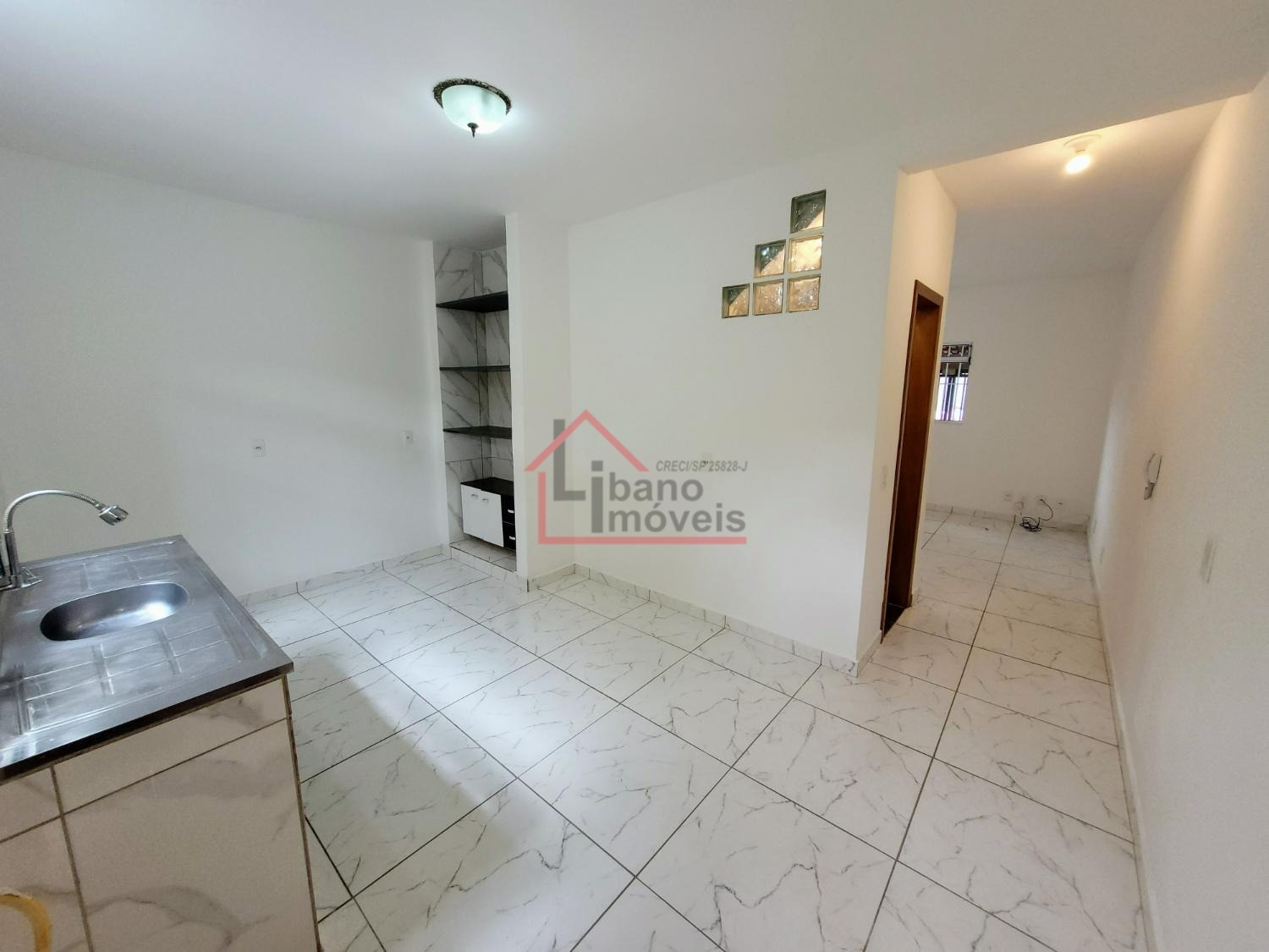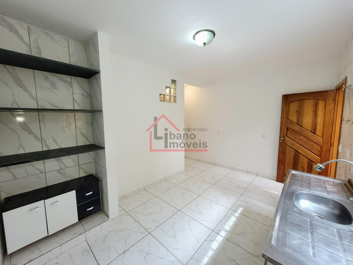 Parte térrea com sala, lavabo, cozinha com gabinete e armário.