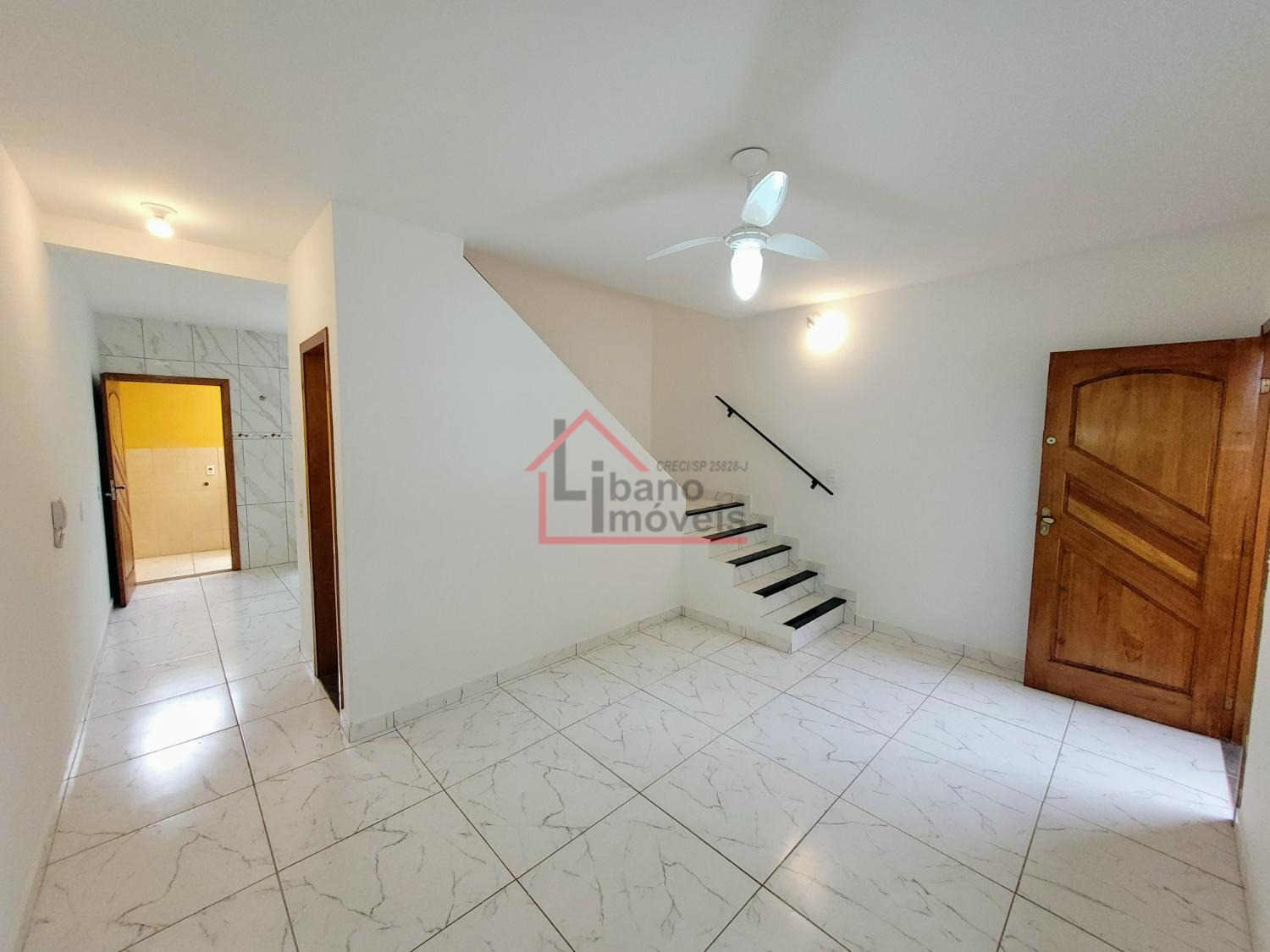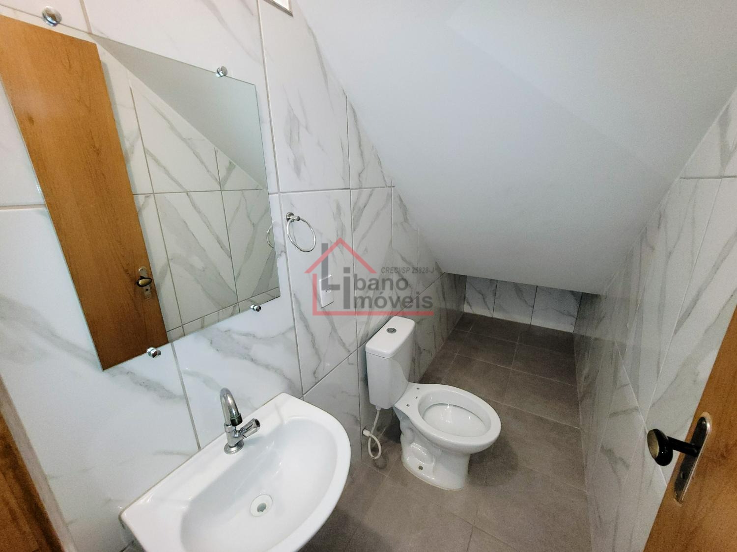 Sobrado com 2 suítes, recém construído, com box de vidro no andar superior.