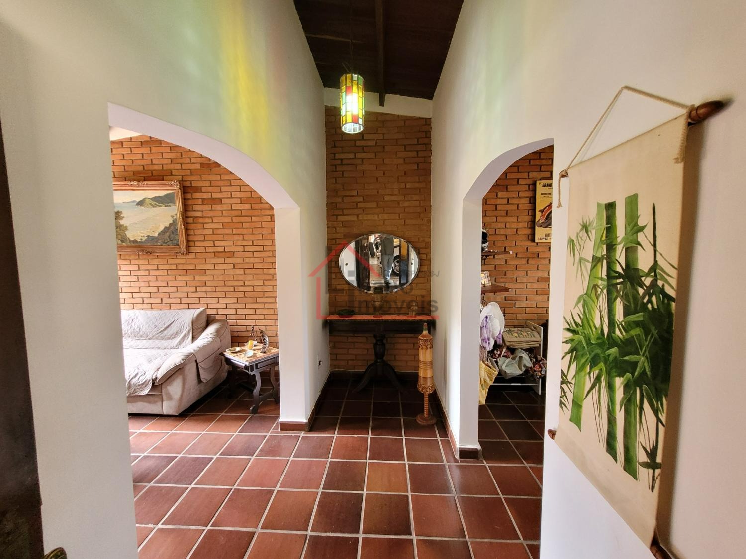 Corredor de acesso pros dormitórios com Sala íntima, de lareira, com piso rebaixado.