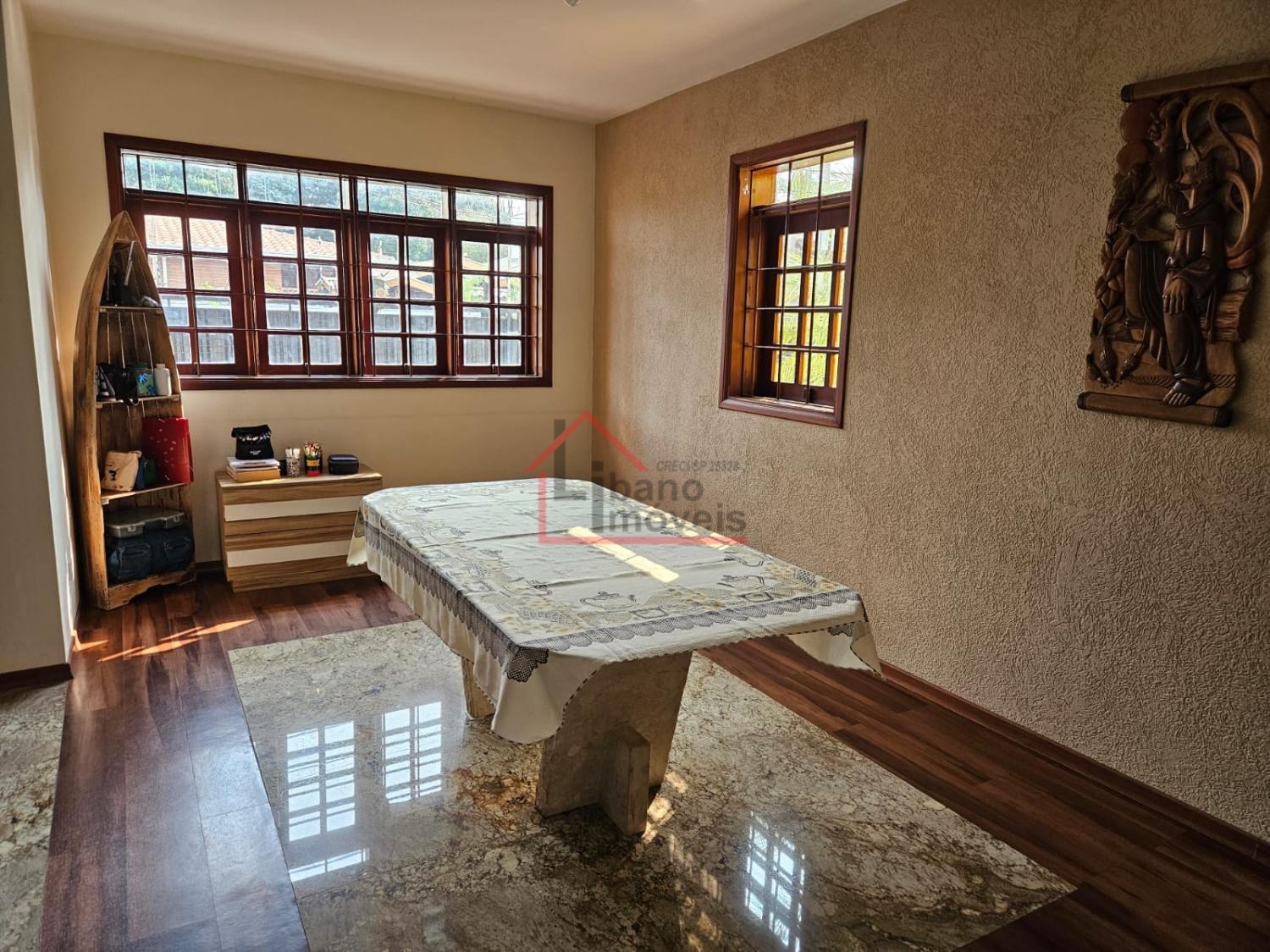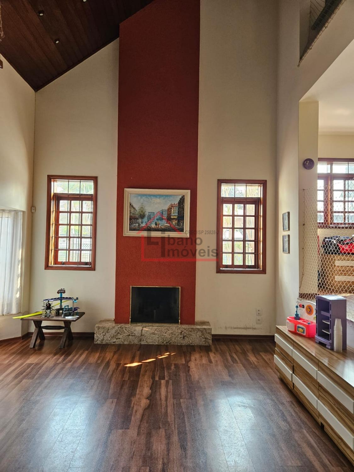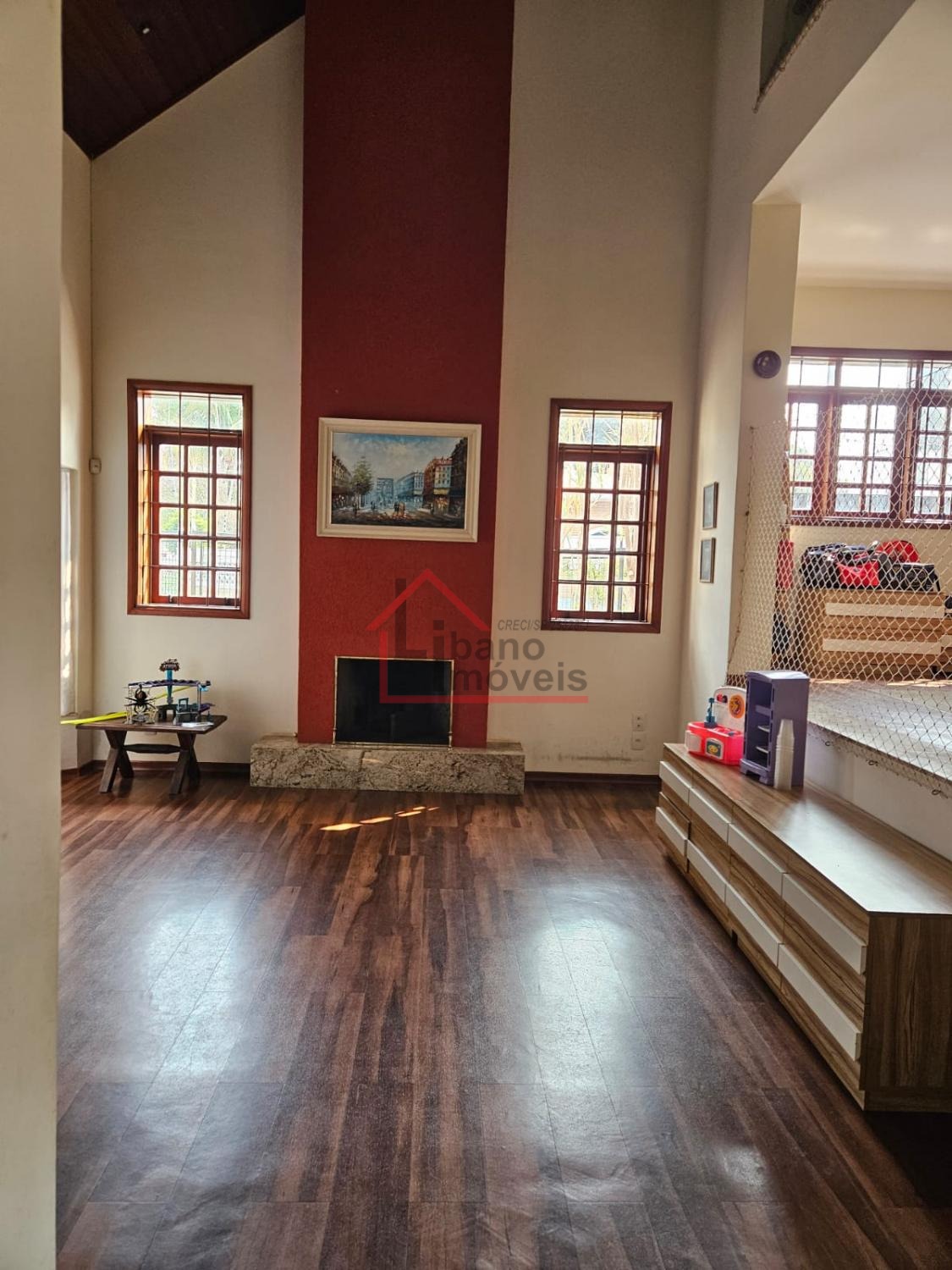 Possui 3 dormitórios sendo 1 suíte, sala menor, sala de tv, cozinha ampla com sala de jantar e armários embutidos, Sala com pé Direito duplo com lareira, Escritório, área gourmet com churrasqueira , Piscina e lavabo.