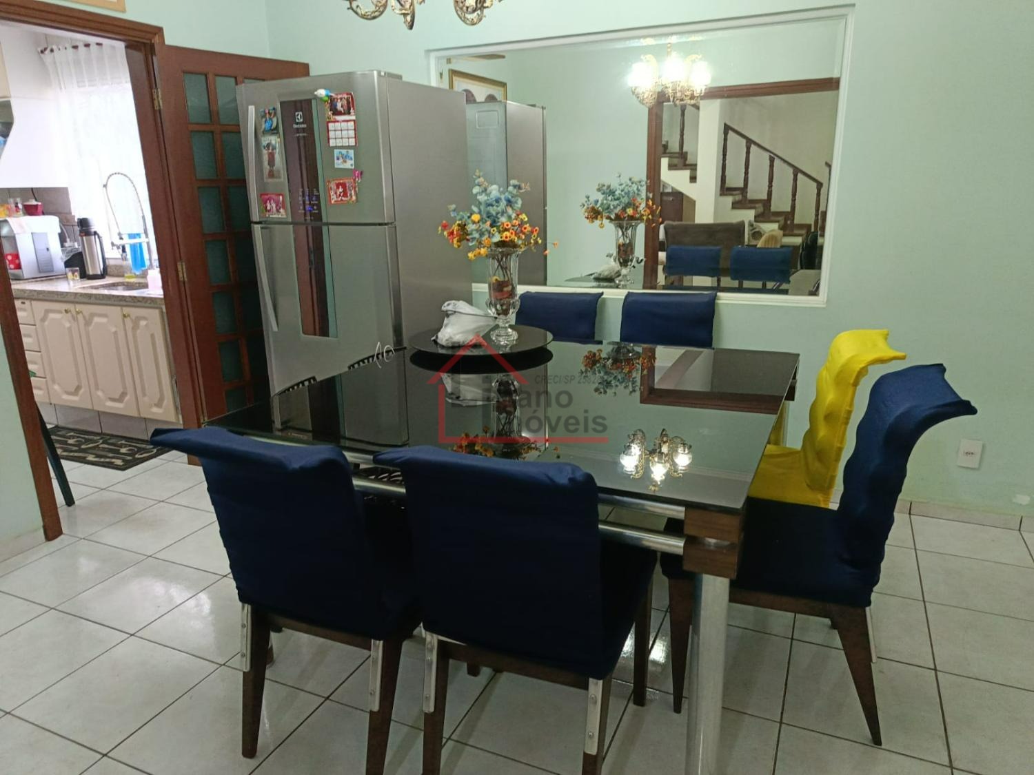 Parte inferior com sala de Tv, sala de jantar, cozinha planejada, área de serviço, 1 dormitório suite, pode converter para escritório e um banheiro social.