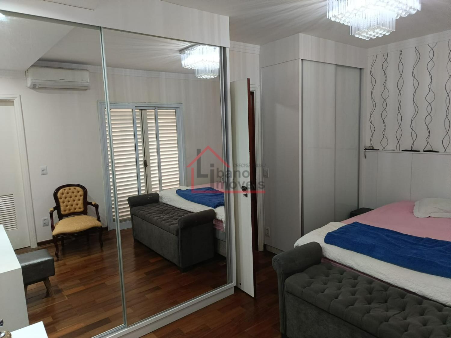 São 3 dormitórios na parte superior sendo um closet com suite, banheiro social, sala de estar.