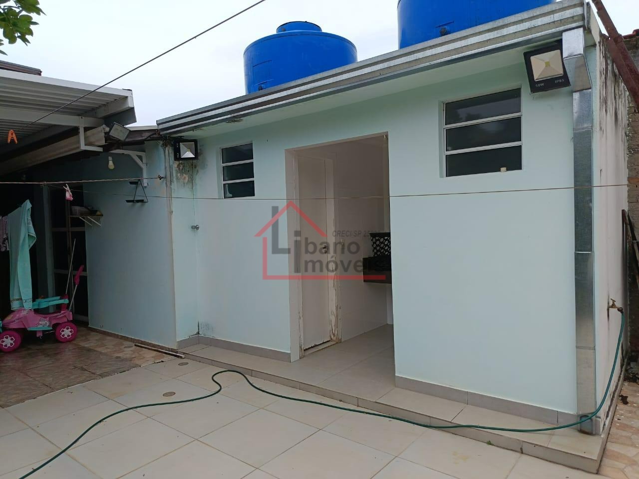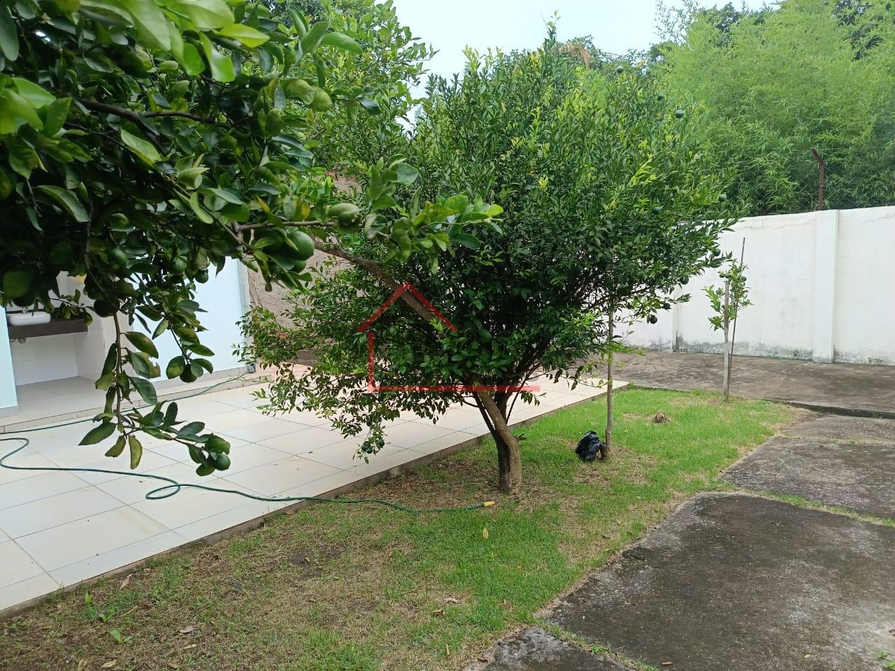 Fundos com quintal amplo, espaço com jardim. churrasqueira, dois banheiros externos para área de lazer.