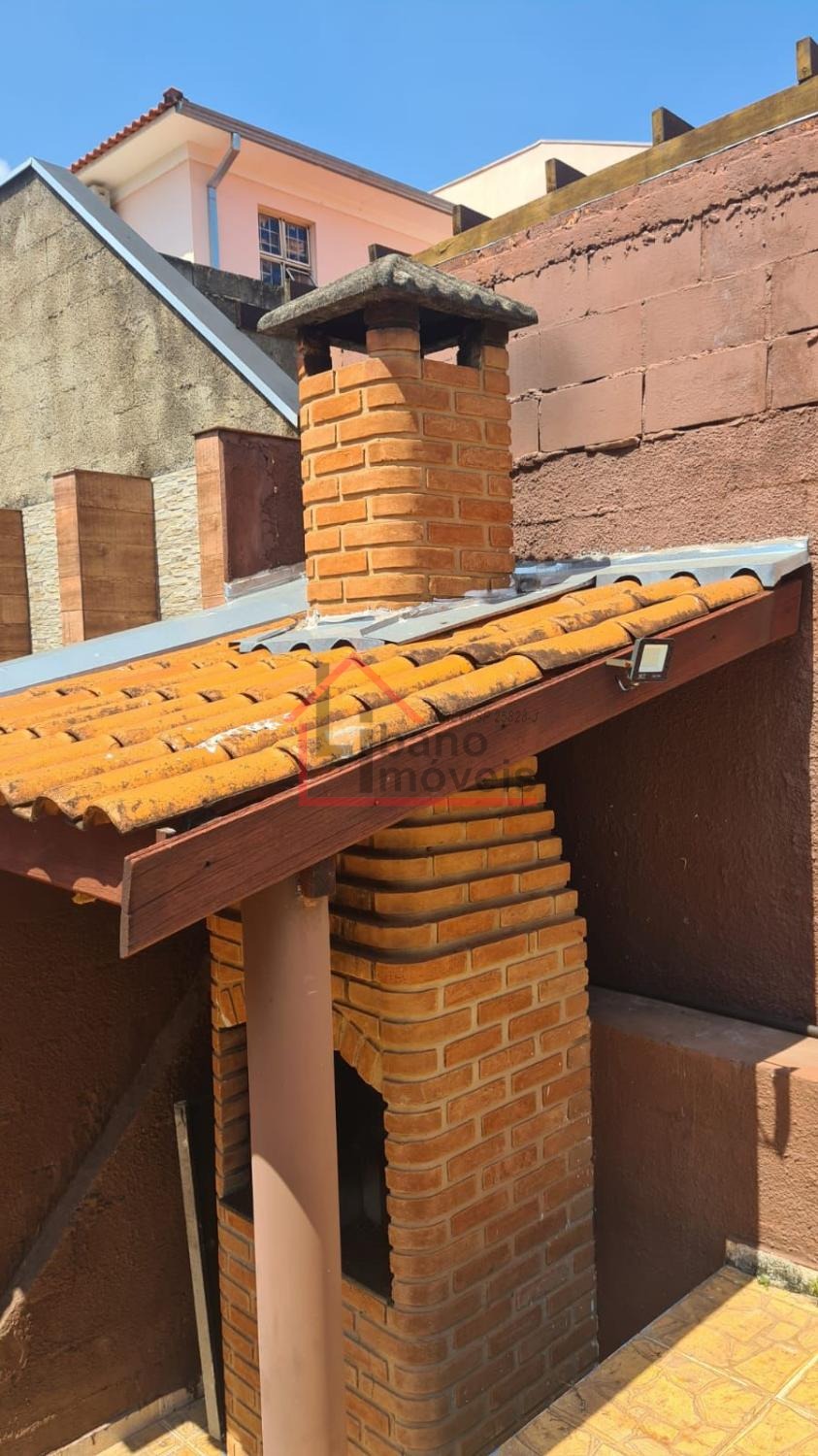 Sobrado com 3 dormitórios, sala com rack, cozinha com armários e porta balcão.