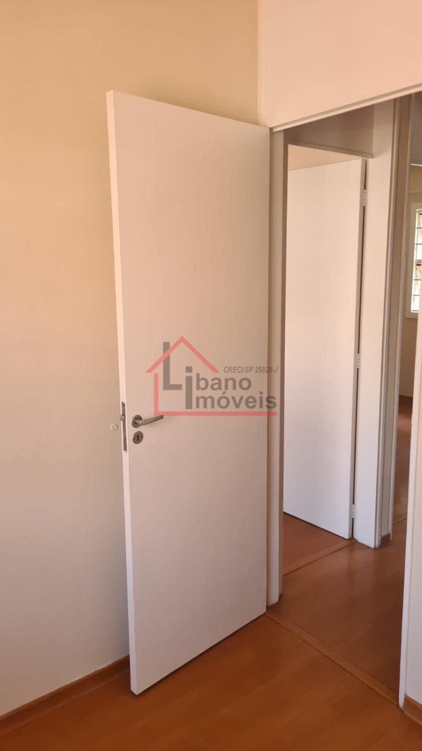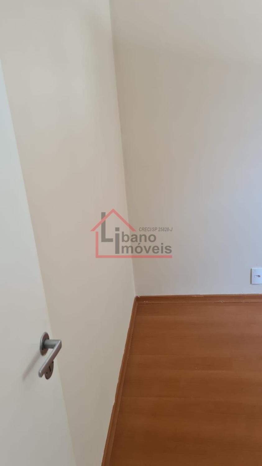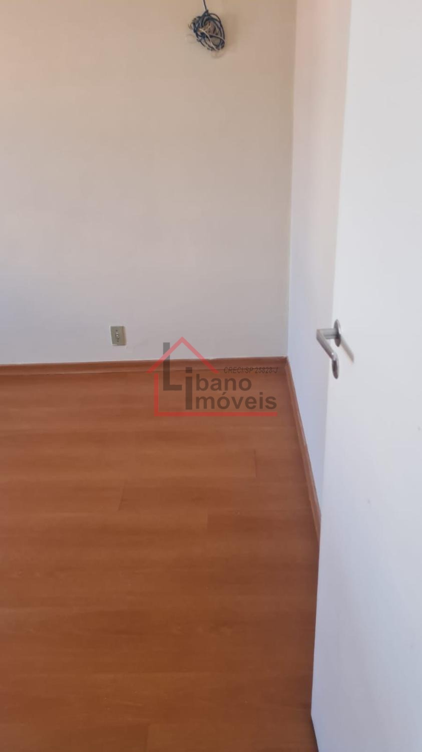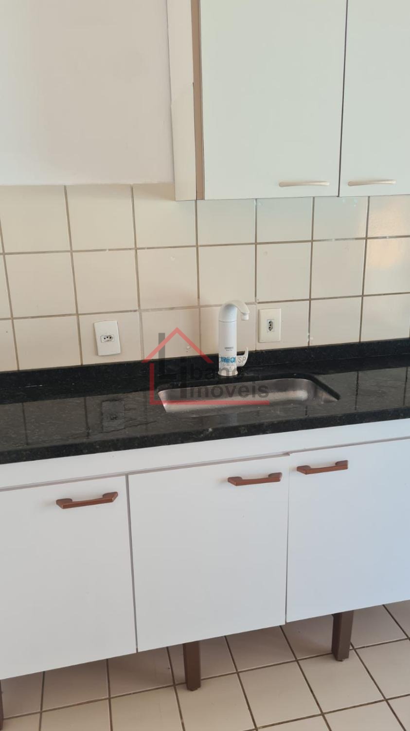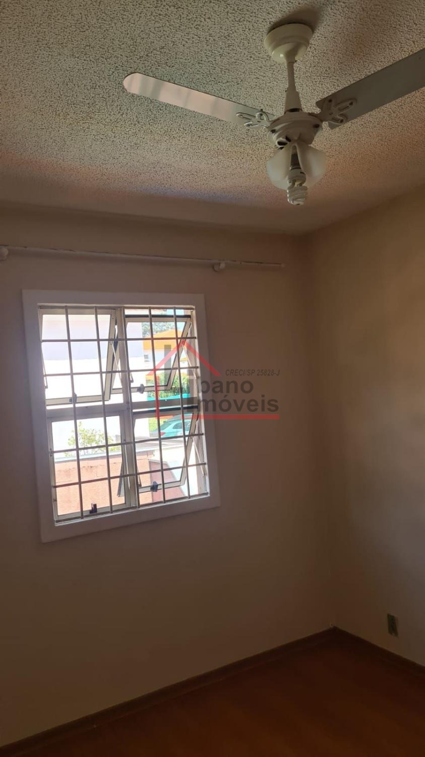 Sobrado com 3 dormitórios, sala com rack, cozinha com armários e porta balcão.