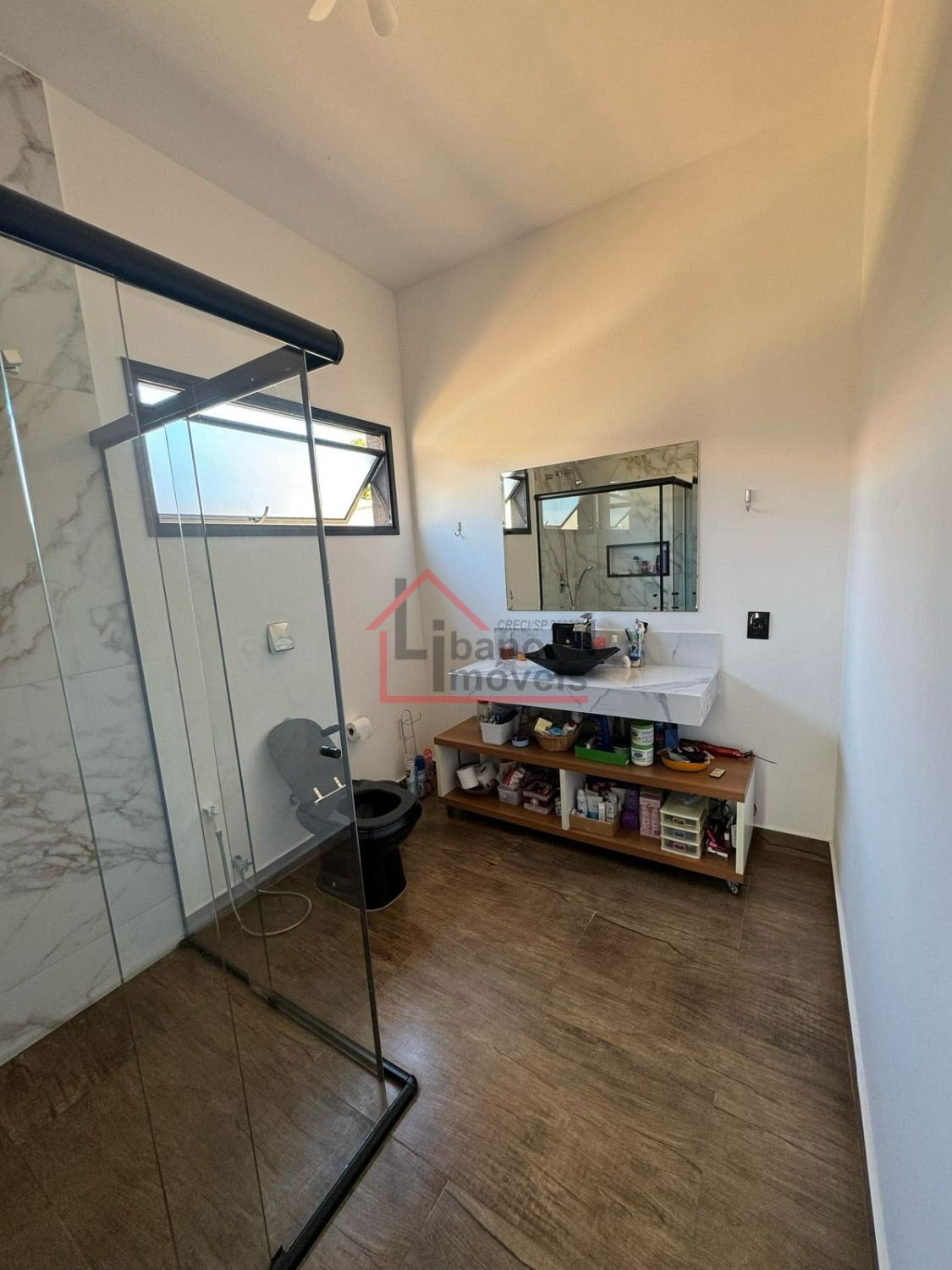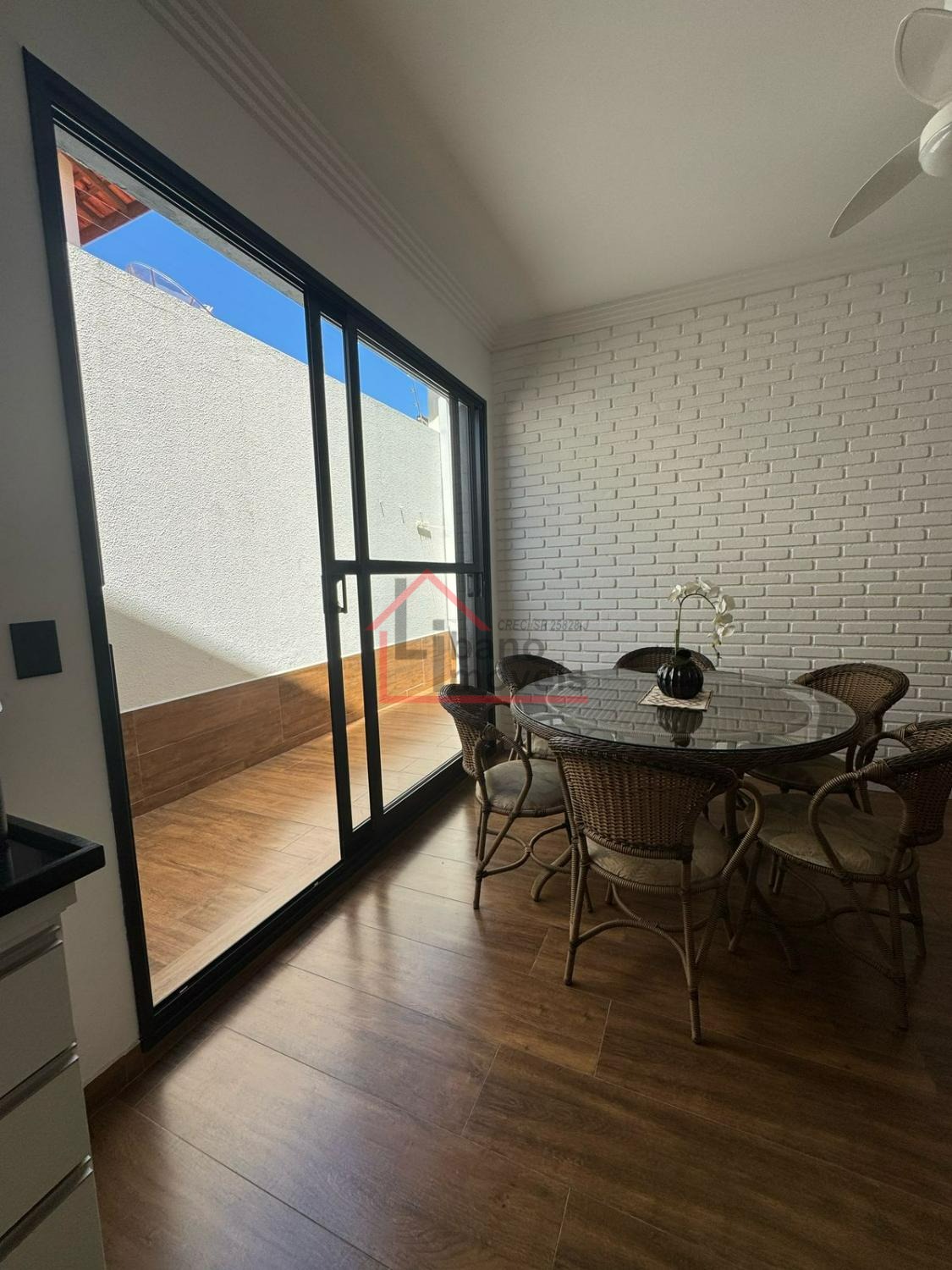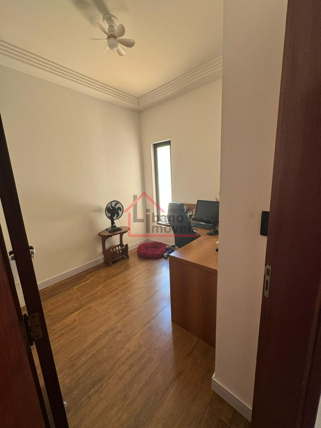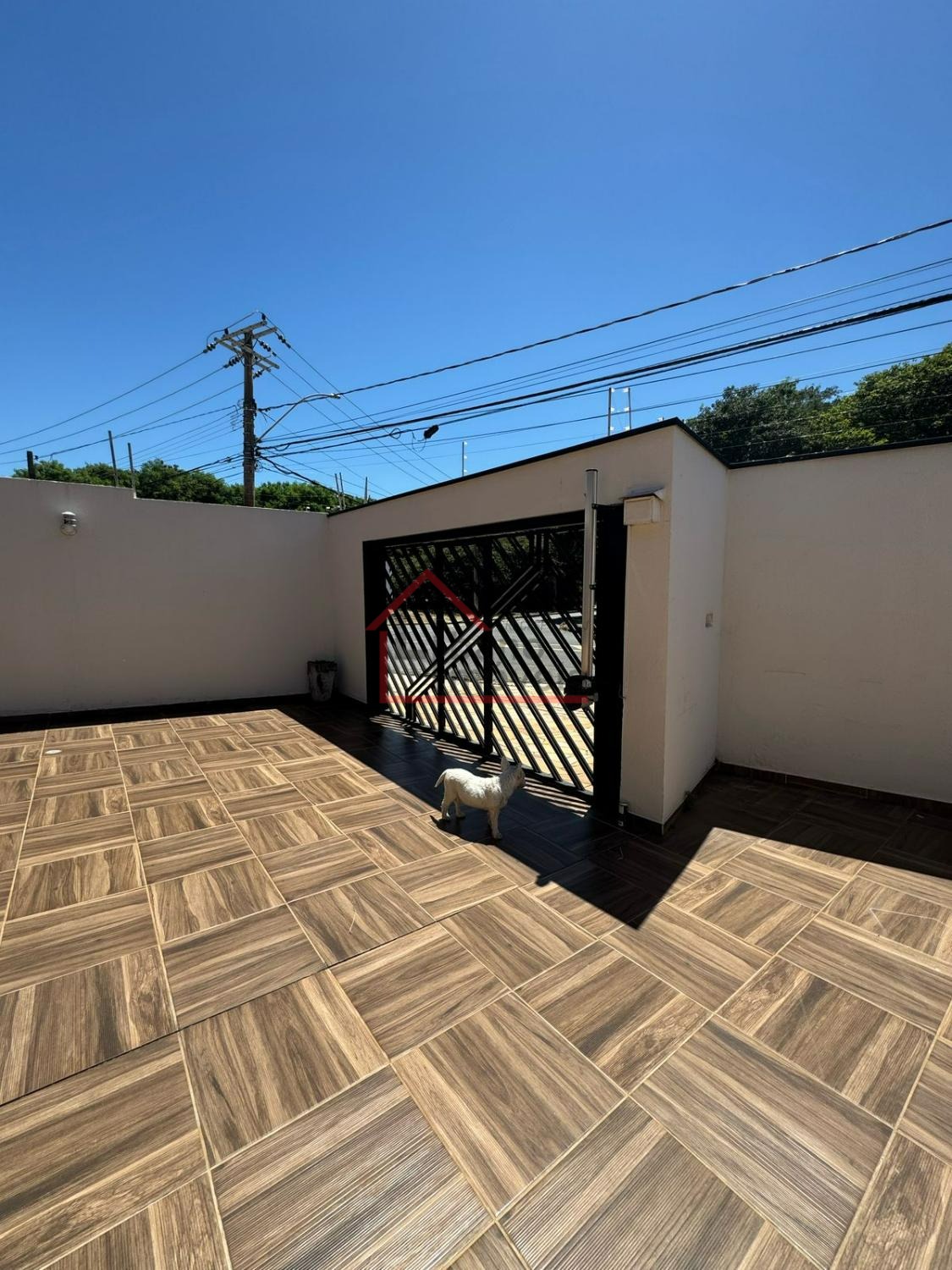 Nos fundos, há uma área gourmet com churrasqueira, balcão, banheiro, um quarto extra e um amplo pátio. A área externa possui piso frio, garantindo praticidade e sofisticação.