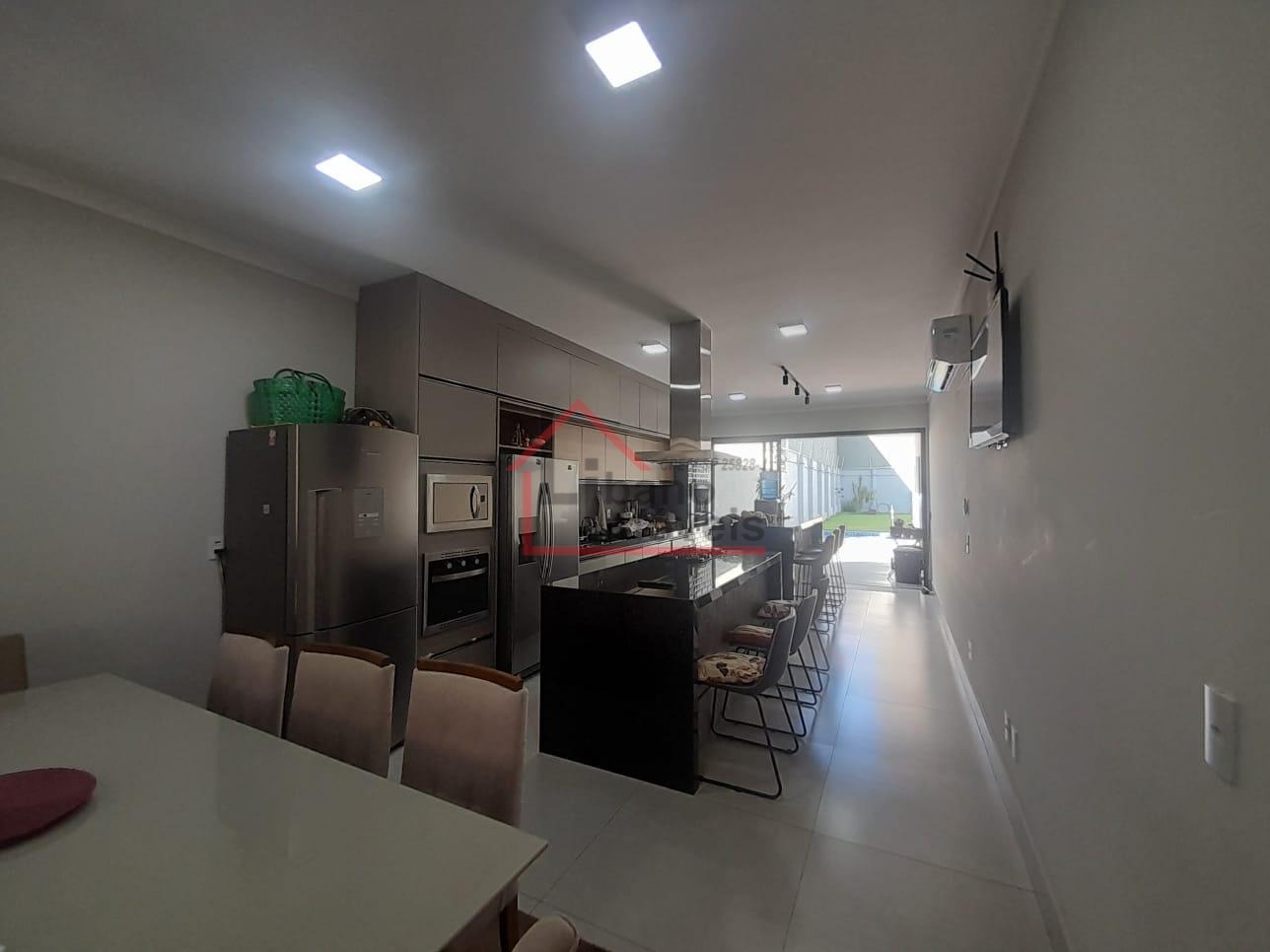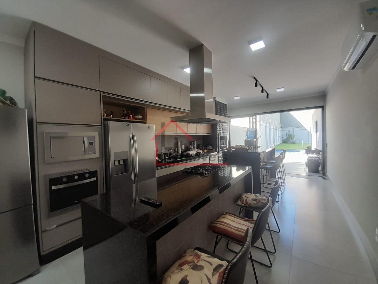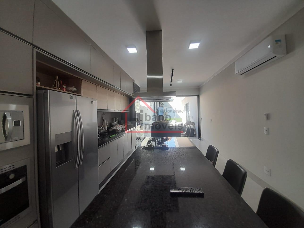 São 3 suítes todas com armários e ar condicionado. Ampla sala de estar com pé-direito duplo proporcionando excelente iluminação e ventilação, lavabo, escritório. Cozinha integrada à sala de jantar com armários planejados e ilhas com pia e fogão.