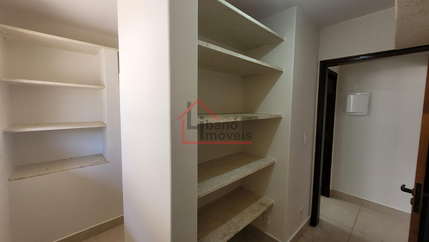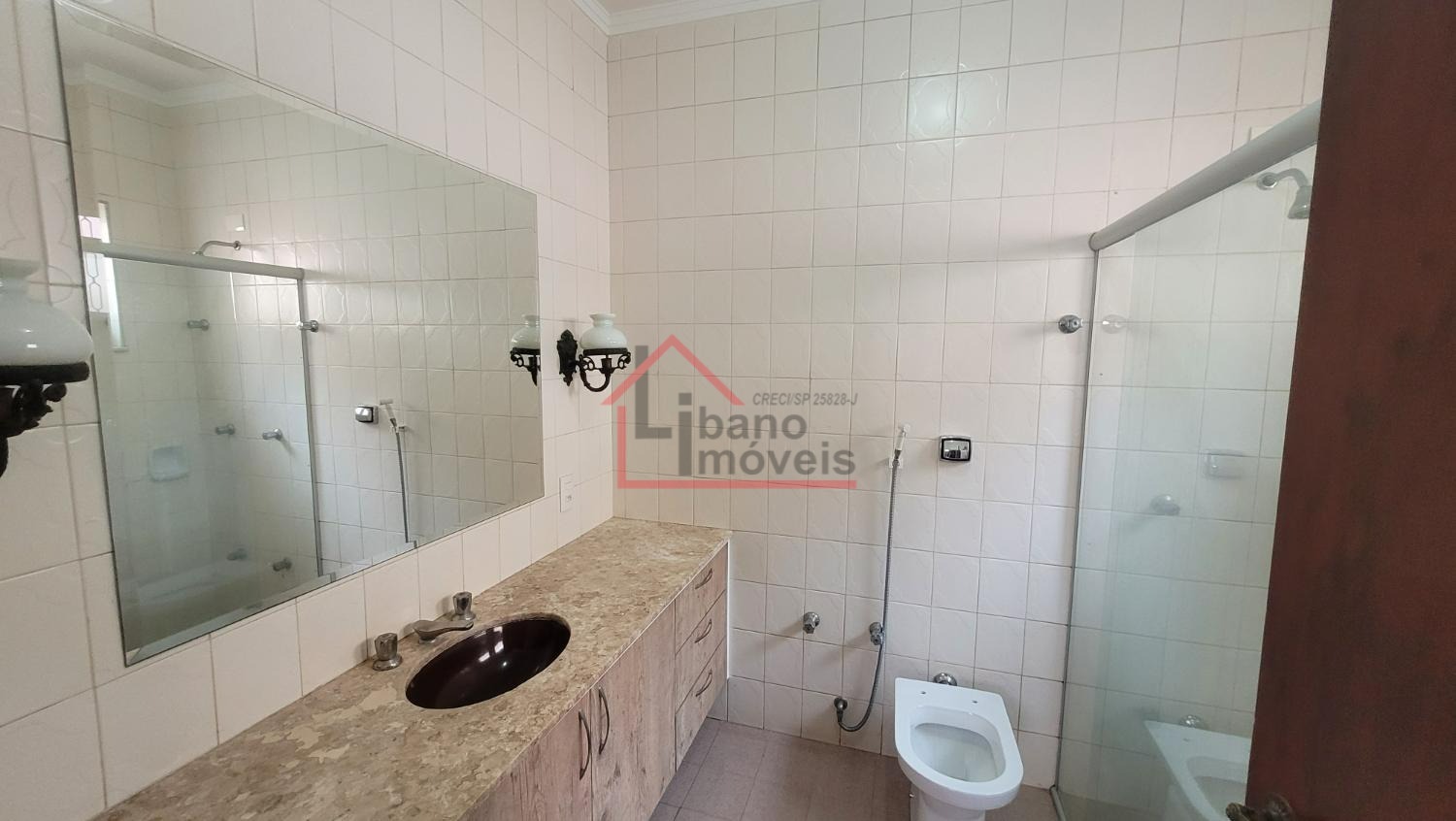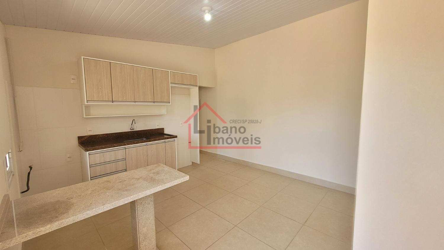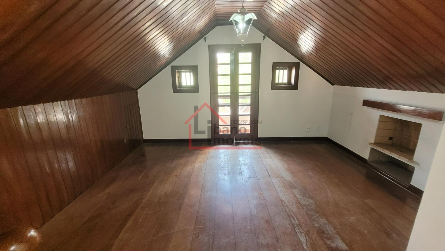 Sala ampla para 2 ambientes, lavabo, escritório com prateleiras, sala de jantar, cozinha. Dependência de serviços e banheiro.