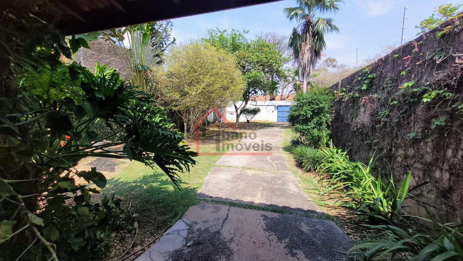 Amplo quintal gramado, com arvores frutíferas e ornamentais.