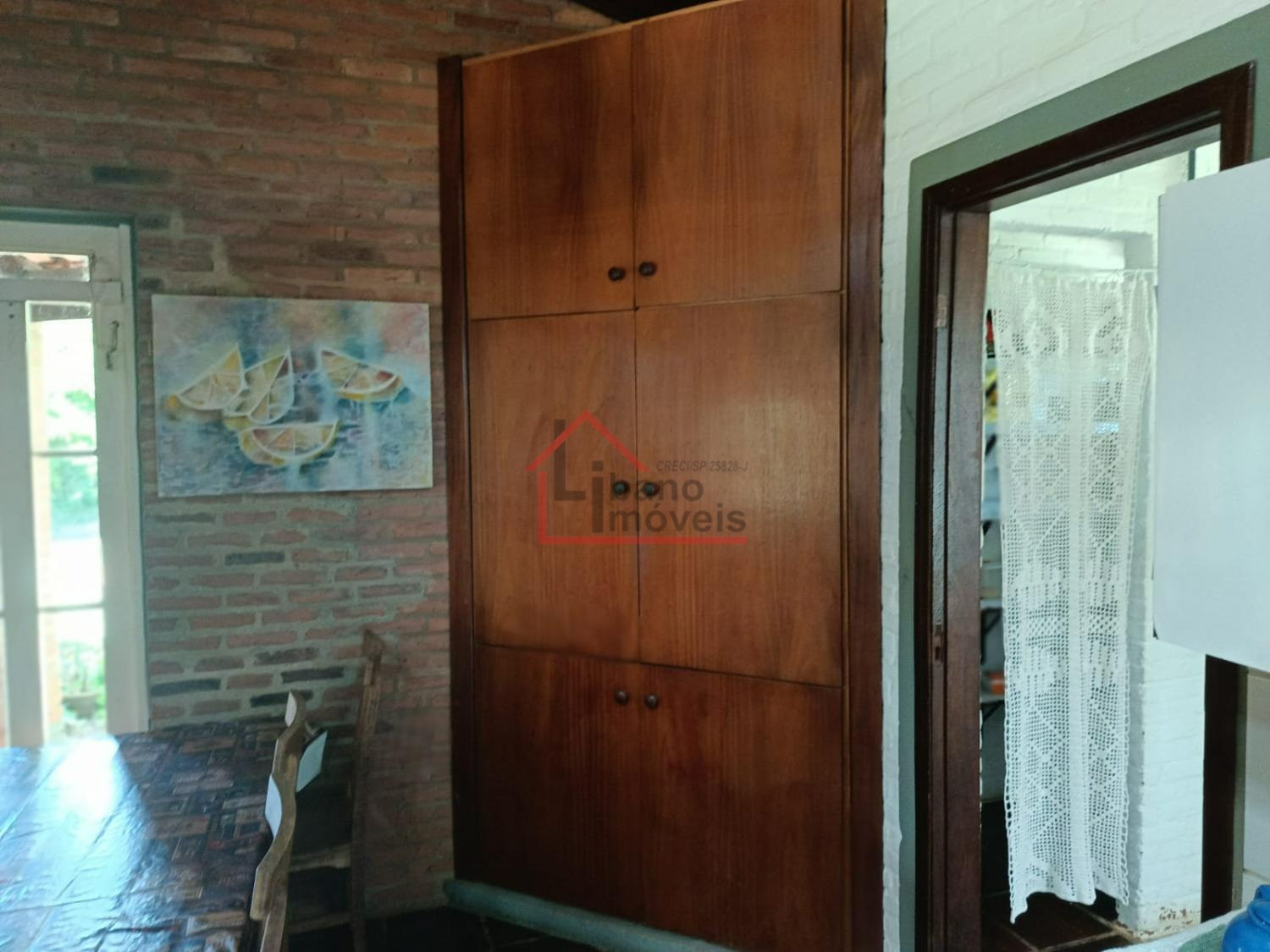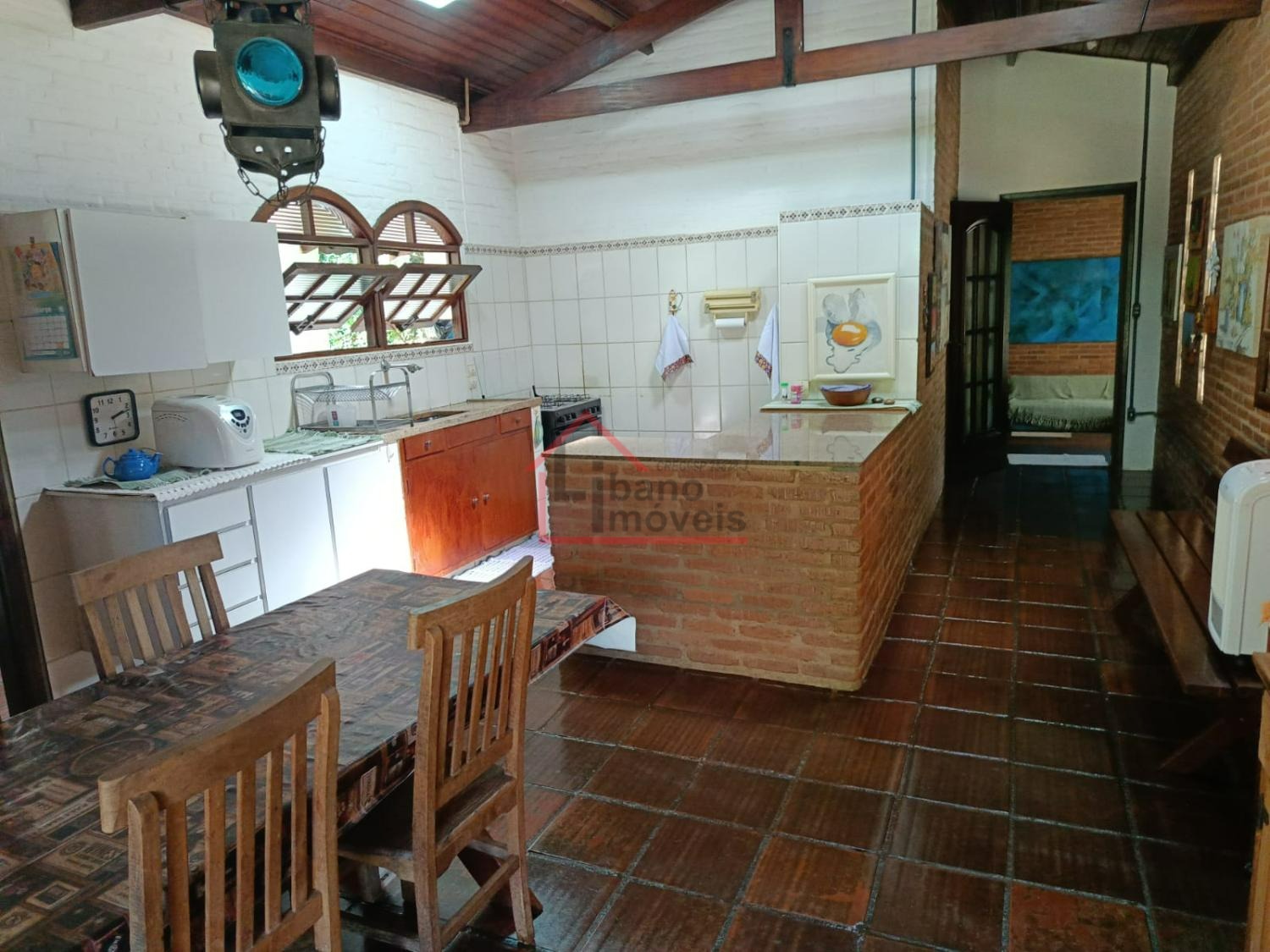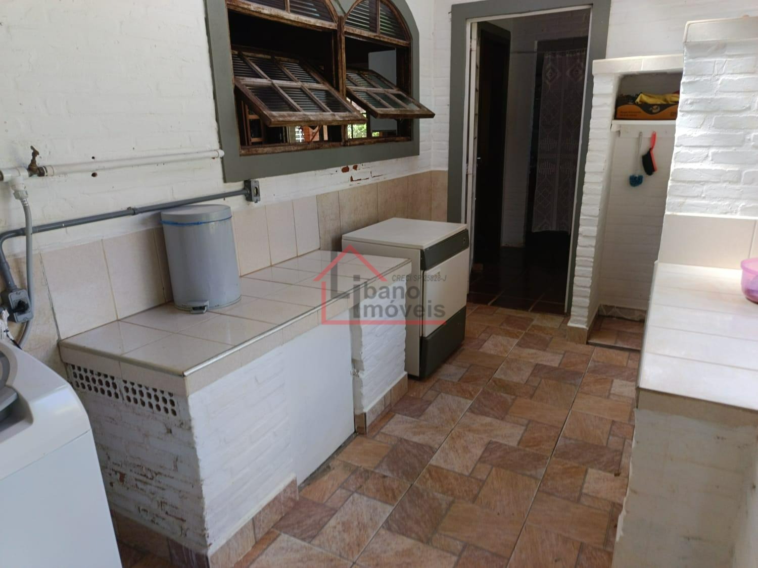 Casa principal com a frente avarandada, toda de tijolinho, piso de madeira lei, teto colonial, uma sala muito agradável, 3 dormitórios com armários, 2 banheiros, cozinha com armários e despensa, área de serviço coberta.