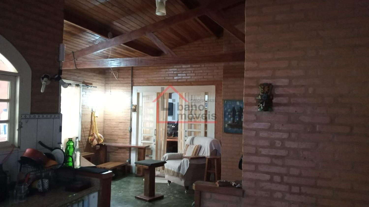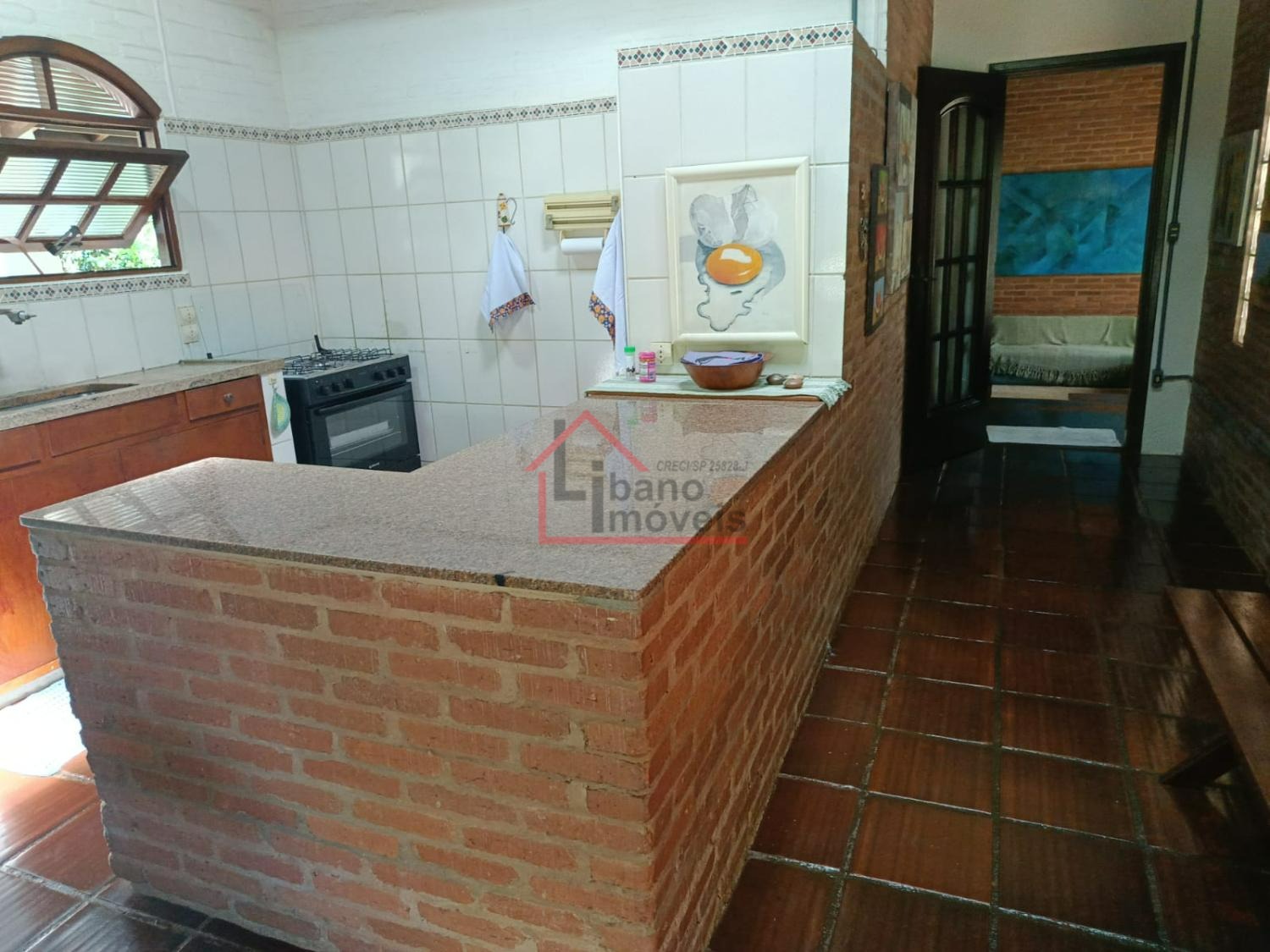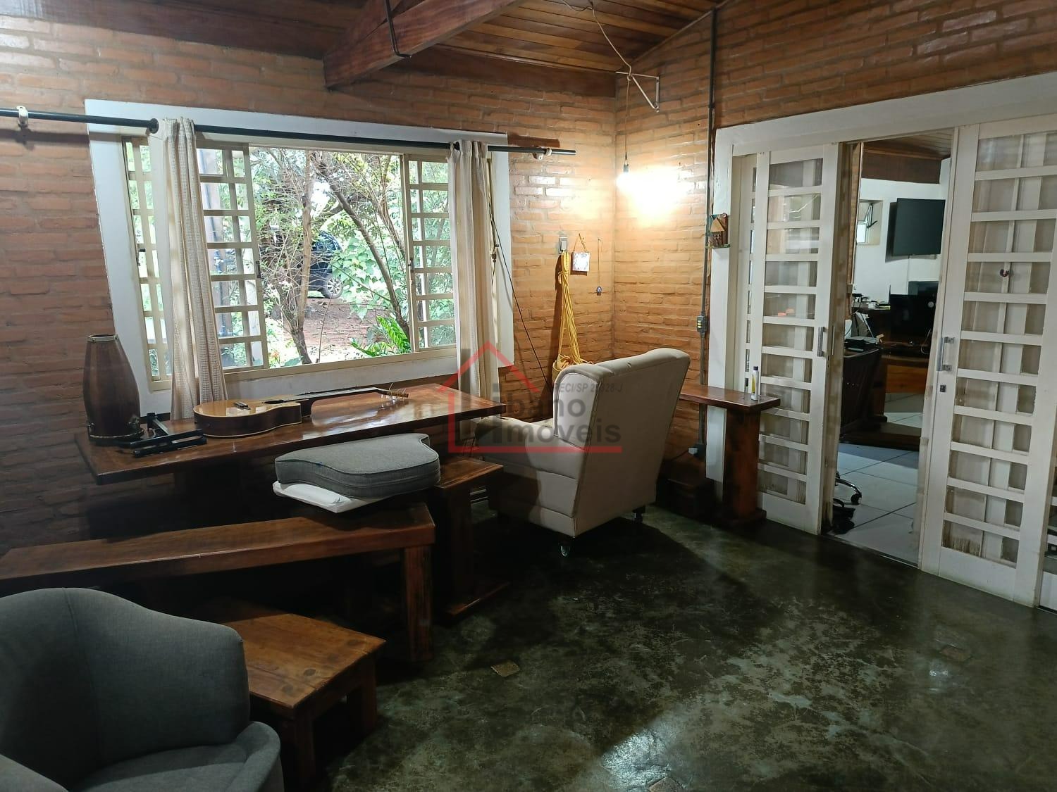 Casa principal com a frente avarandada, toda de tijolinho, piso de madeira lei, teto colonial, uma sala muito agradável, 3 dormitórios com armários, 2 banheiros, cozinha com armários e despensa, área de serviço coberta.