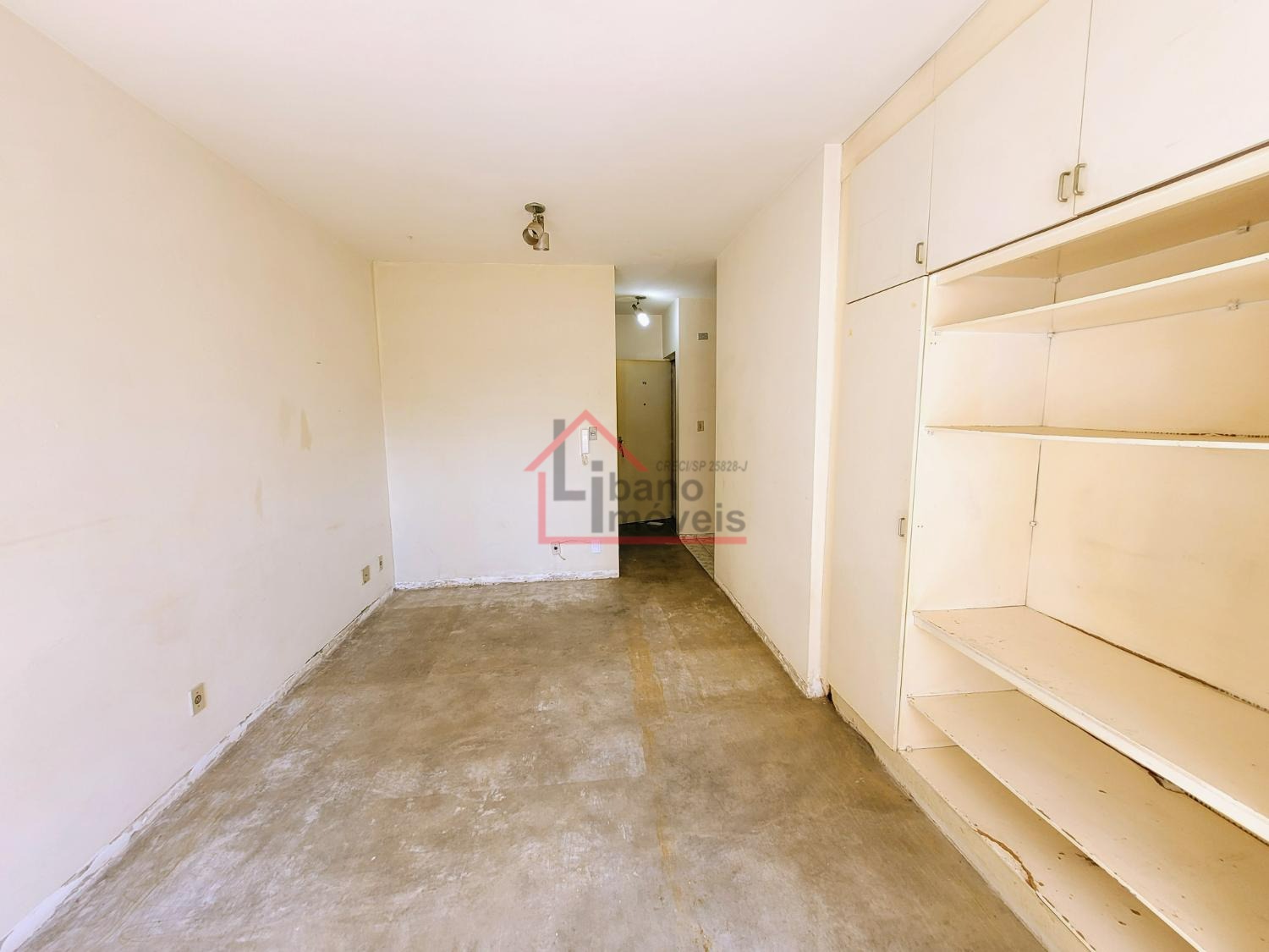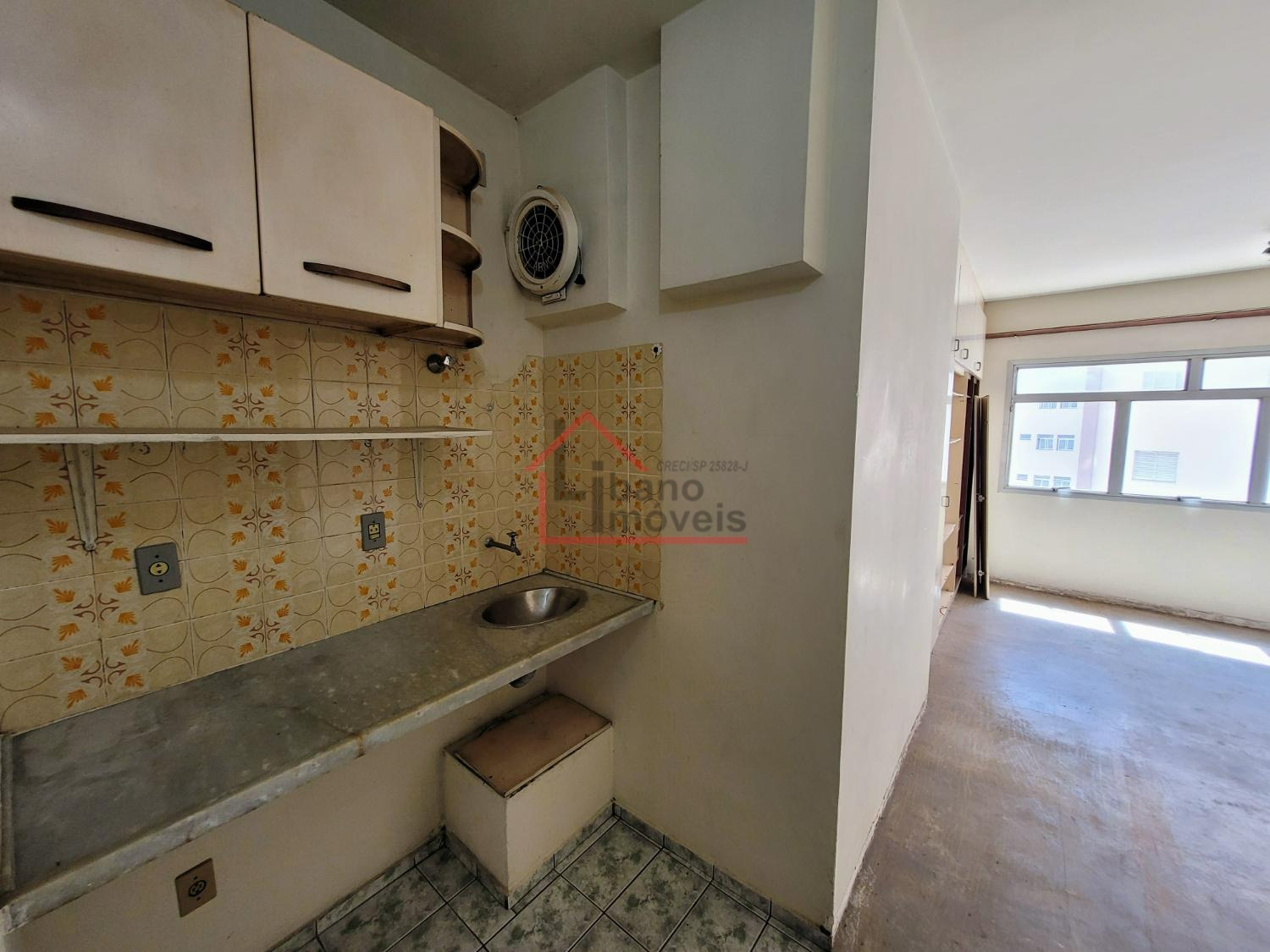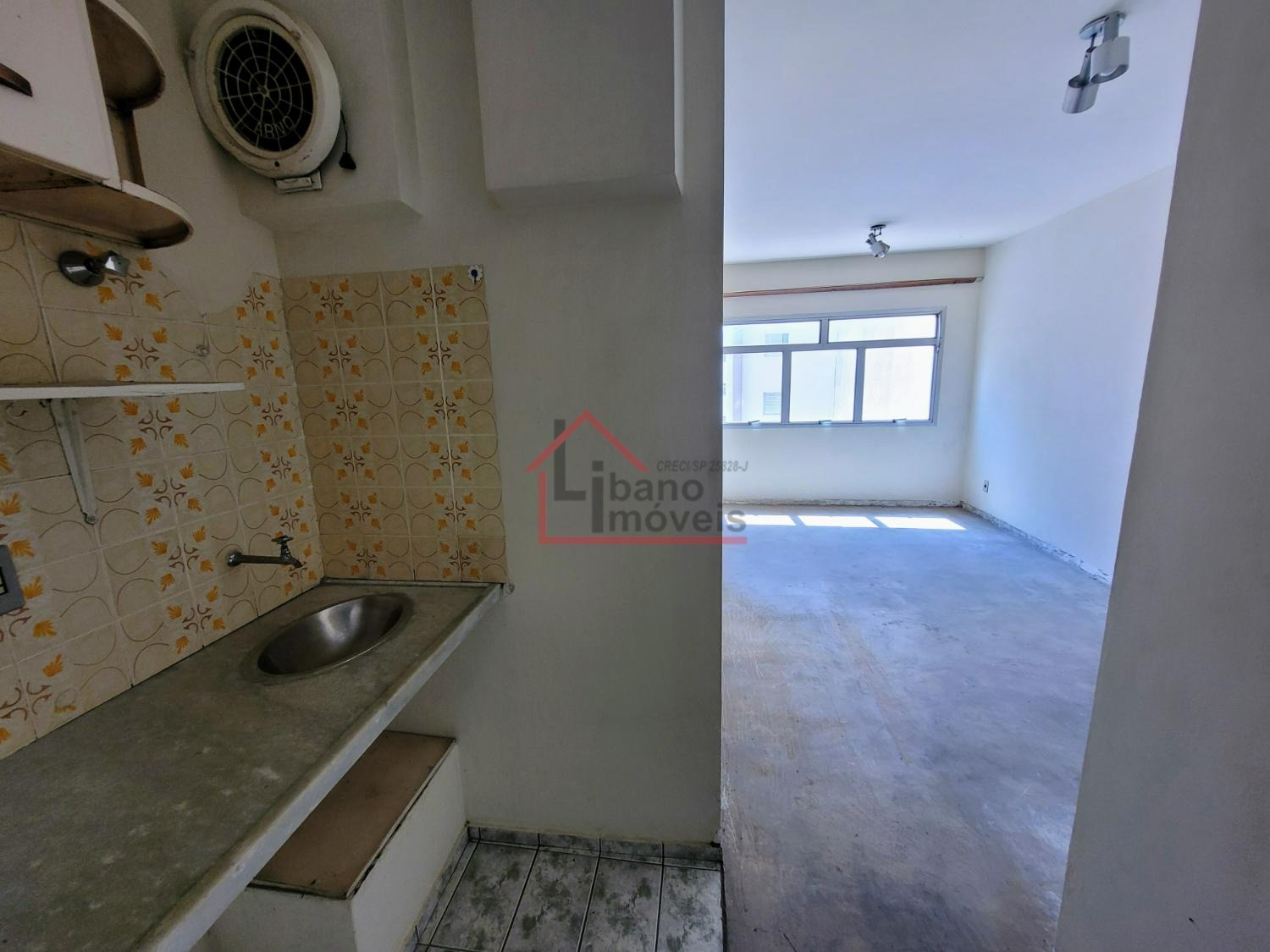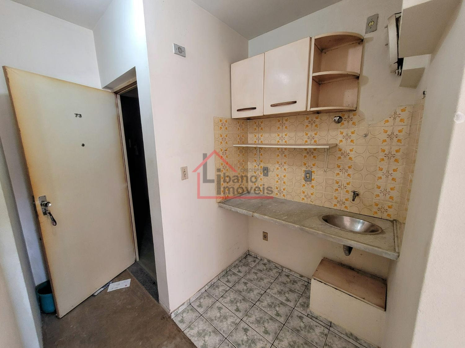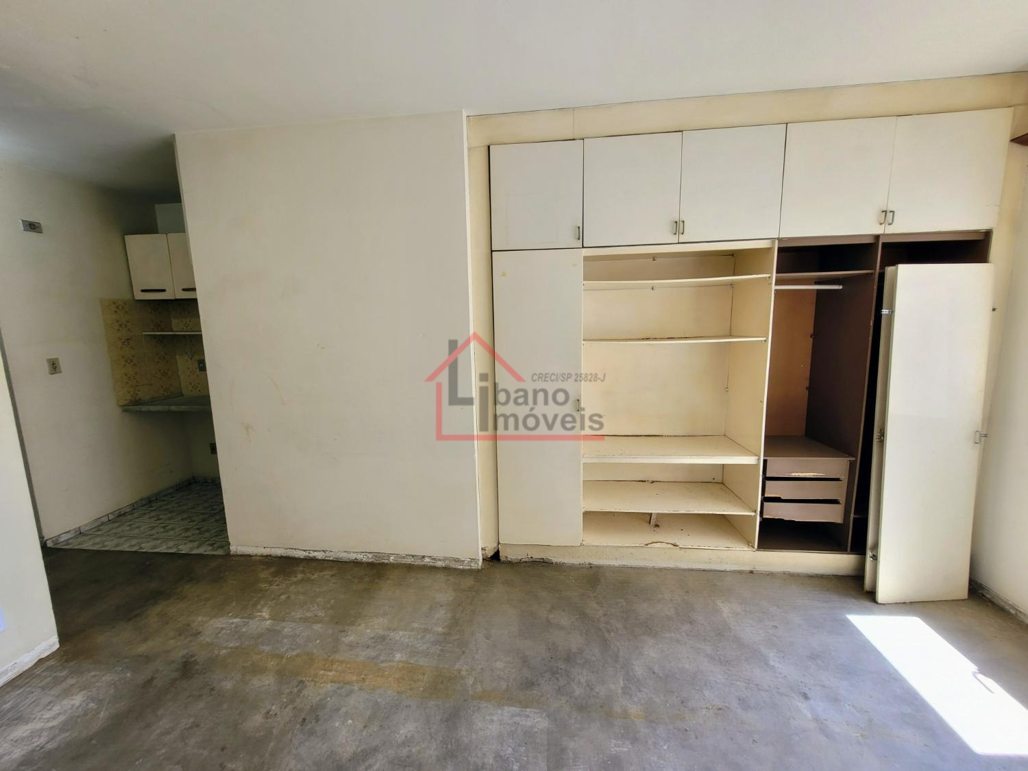Apartamento do tipo kitnet estúdio (quando não há divisória entre os espaços destinados a cozinha e dormitório) e banheiro. Não possui vaga de garagem.