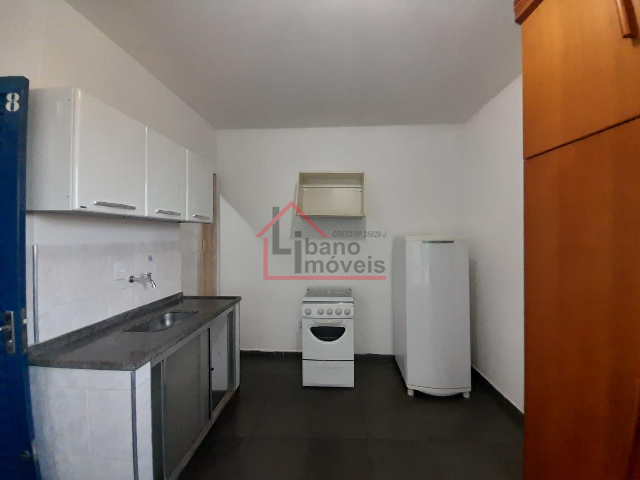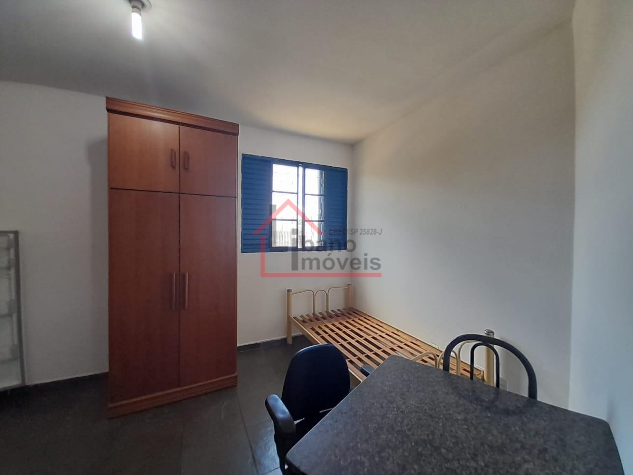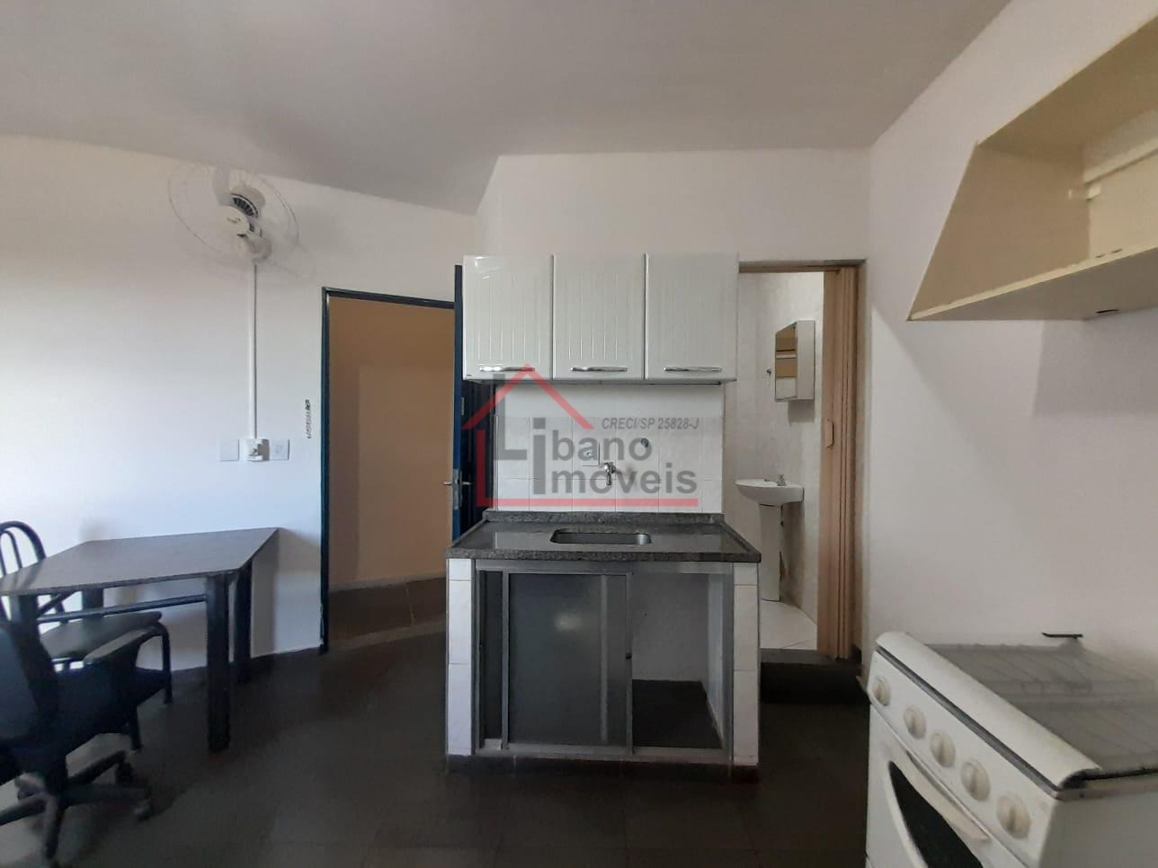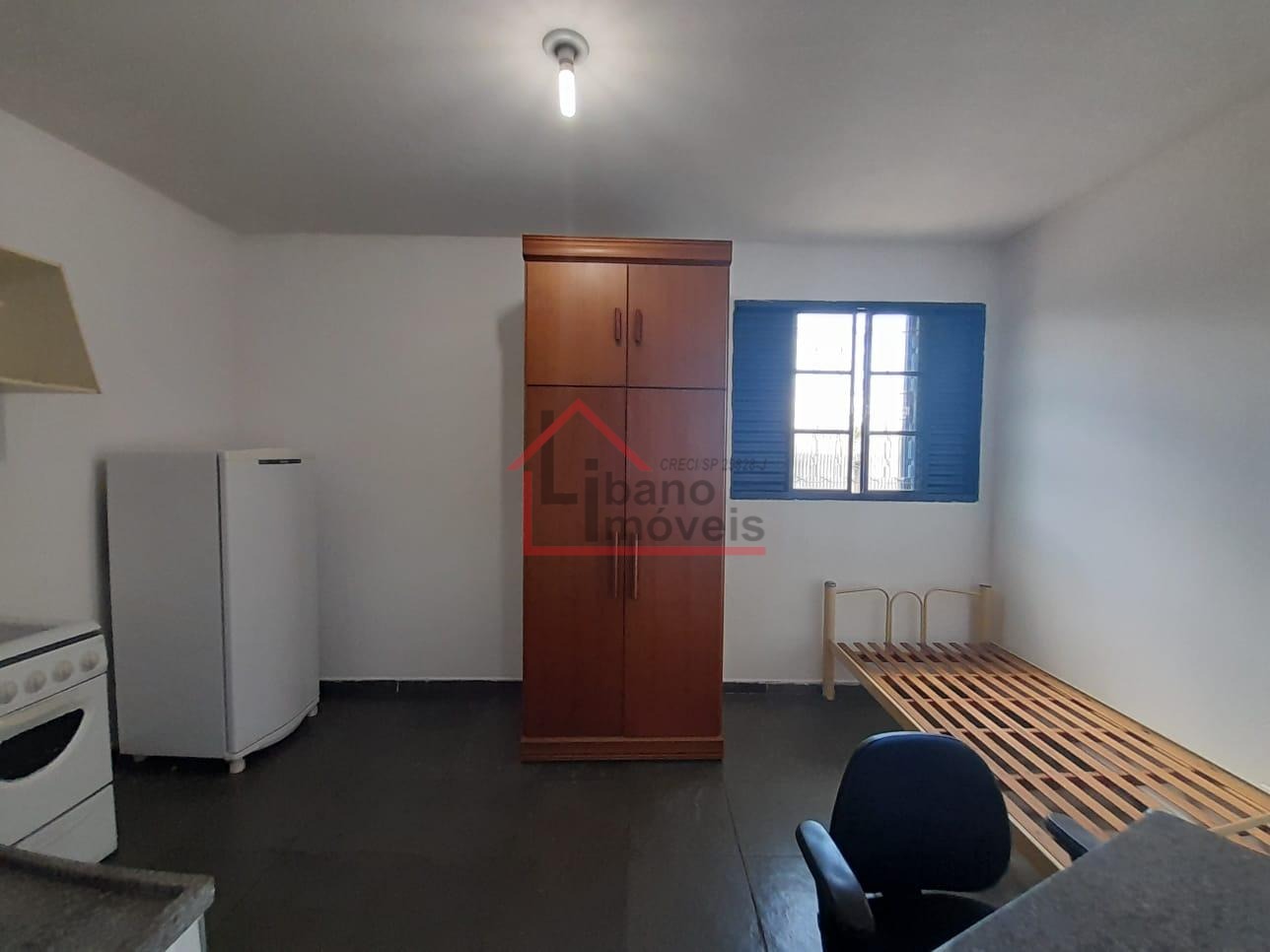 Kitnet do estilo estúdio, mobiliada com geladeira litros, fogão 4 bocas com forno, armário auxiliar na cozinha, mesa com cadeiras, cama de solteiro sem colchão, guarda roupas,