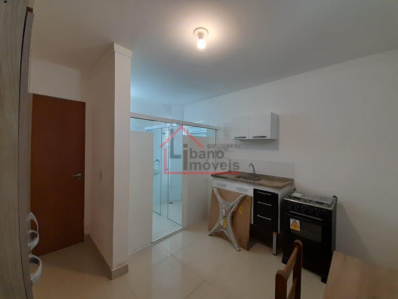 Kit de ótimo padrão, mobiliada com geladeira, fogão de 4 bocas à gás, armários, mesa de estudos, cama box sem colchão, gabinete de pia e quintal.
