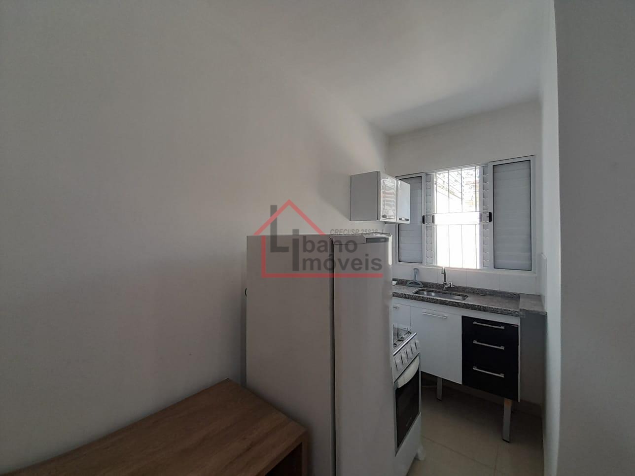 Kit de ótimo padrão, mobiliada com geladeira, fogão de 4 bocas à gás, armários, mesa de estudos, cama box sem colchão e gabinete de pia.