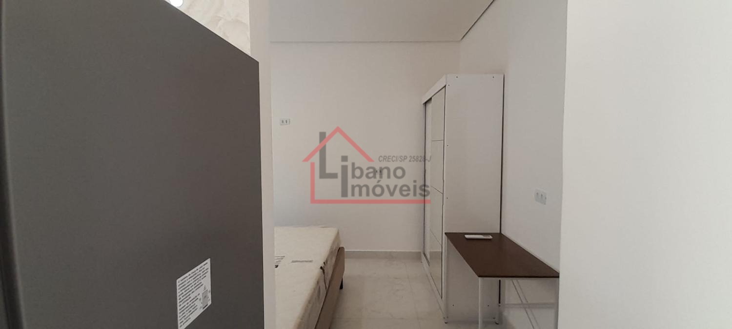 Equipada com fogão elétrico 2 bocas, geladeira, armários, mesa de estudos, cama box com colchão e ar condicionado.