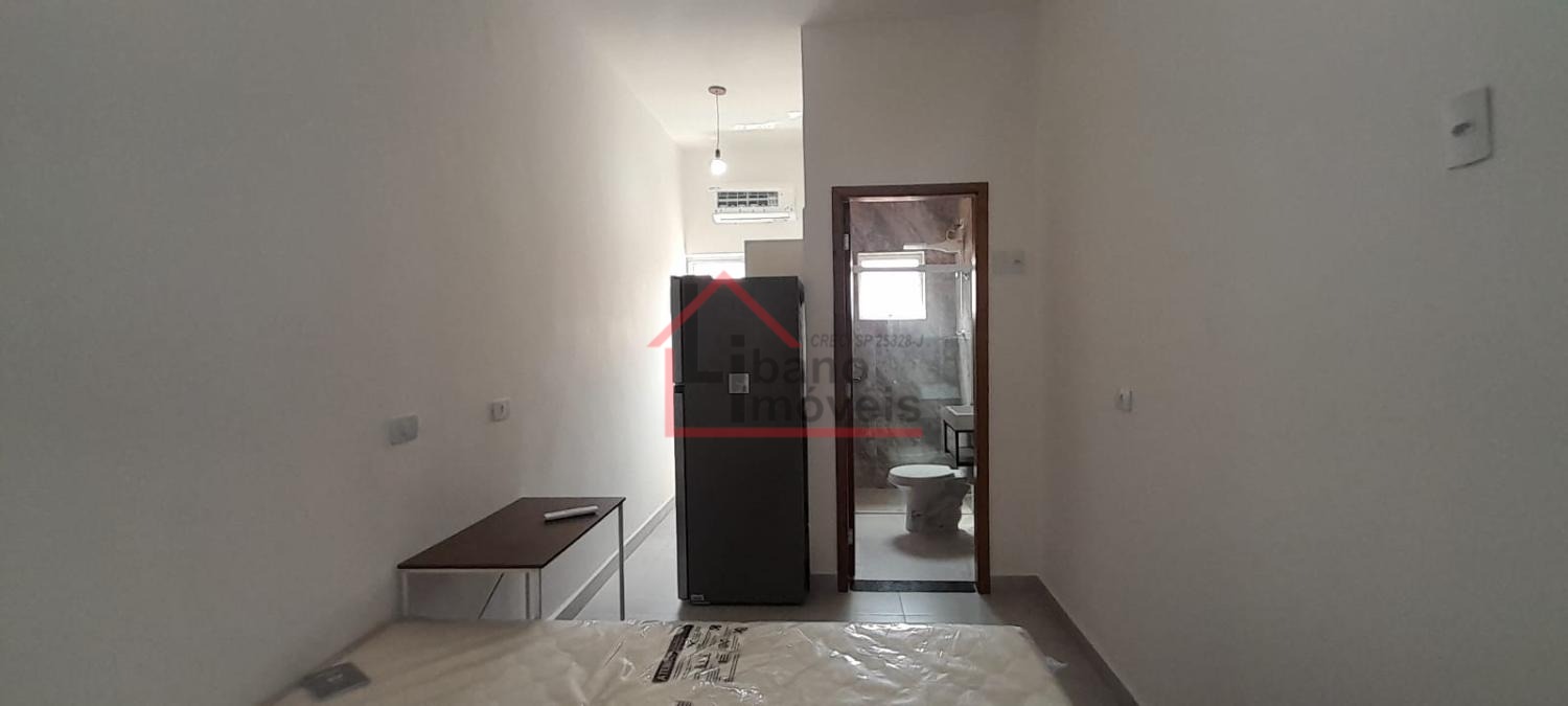Equipada com fogão elétrico 2 bocas, geladeira, armários, mesa de estudos, cama box com colchão e ar condicionado.