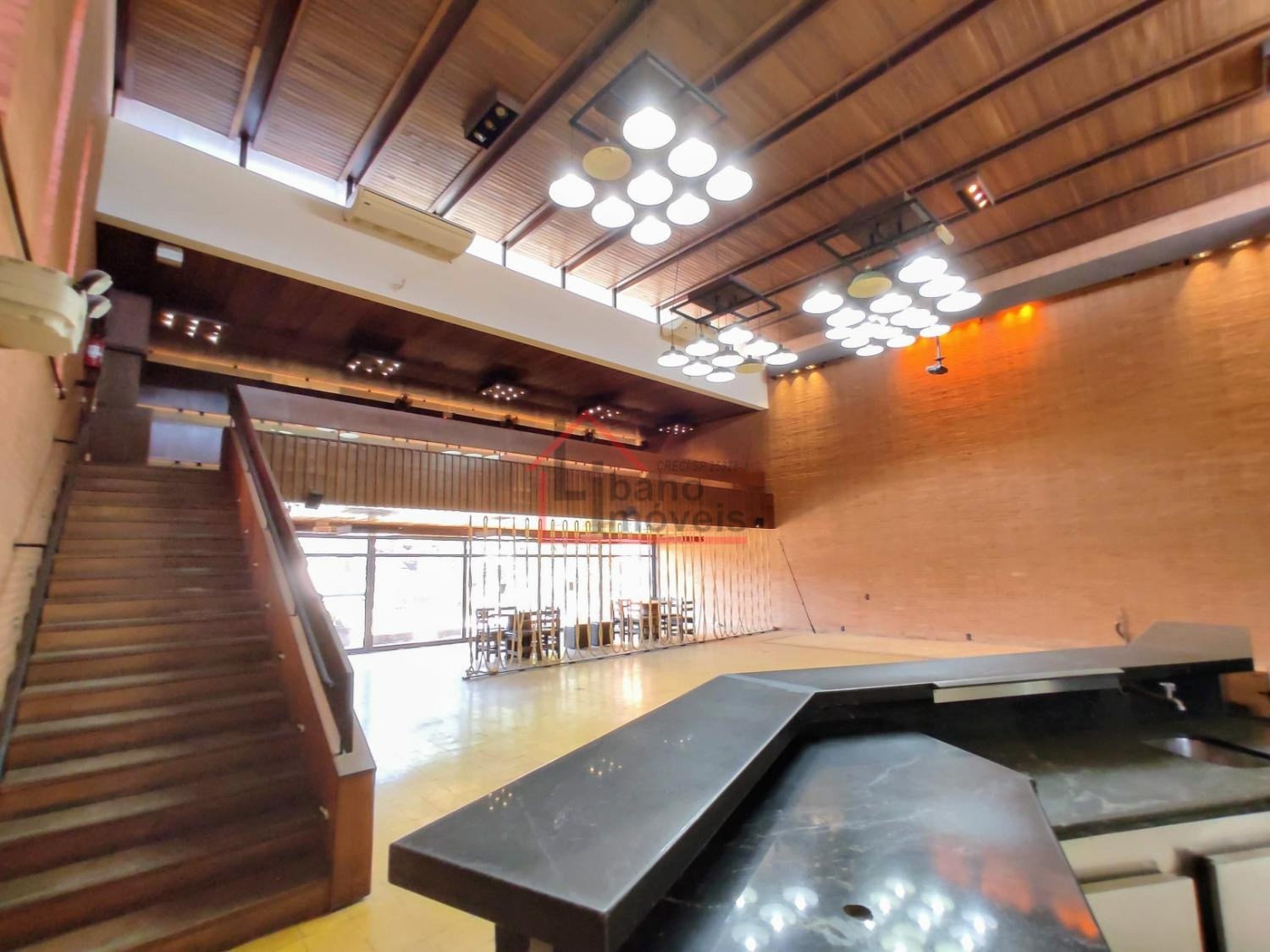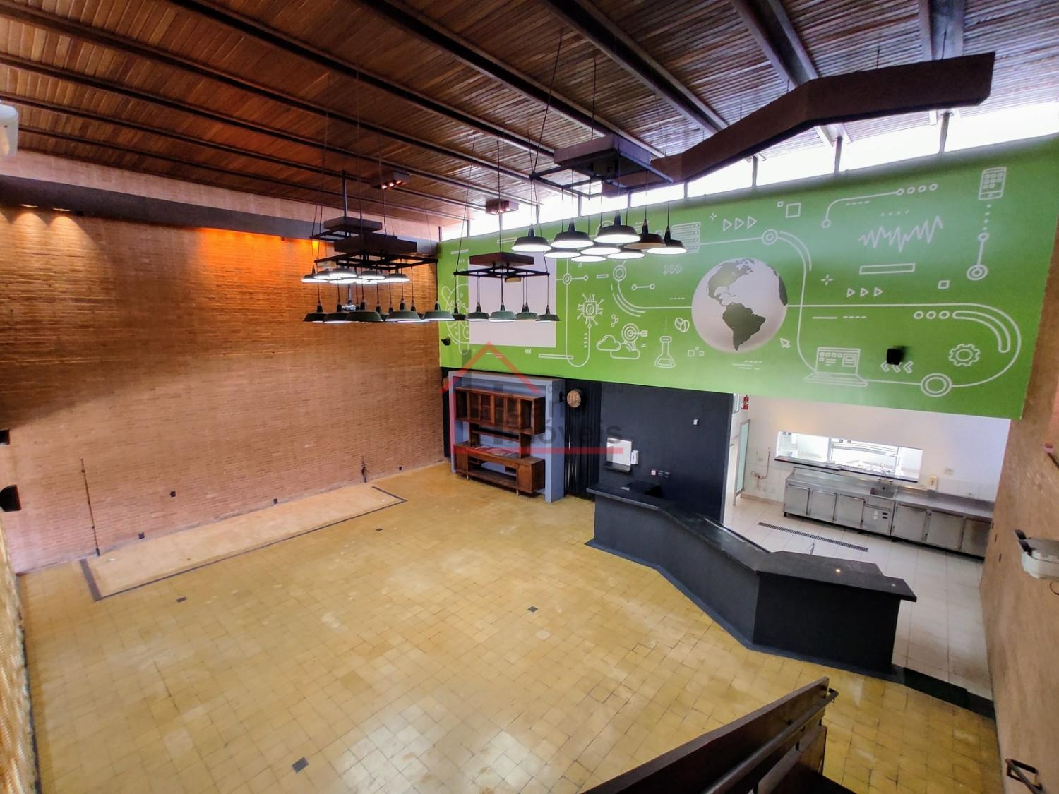 Amplo salão com cerca de 136m² na parte térrea, e com mezanino com cerca de 56m², + cozinha com coifa + câmara fria desativada + 02 salas/escritórios + 05 banheiros, sendo 02 destinados a clientes localizados no salão principal.